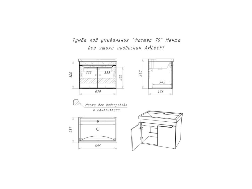 Дополнительно необходимо приобрести: Умывальник мебельный "Фостер 70" Kirovit г.Киров