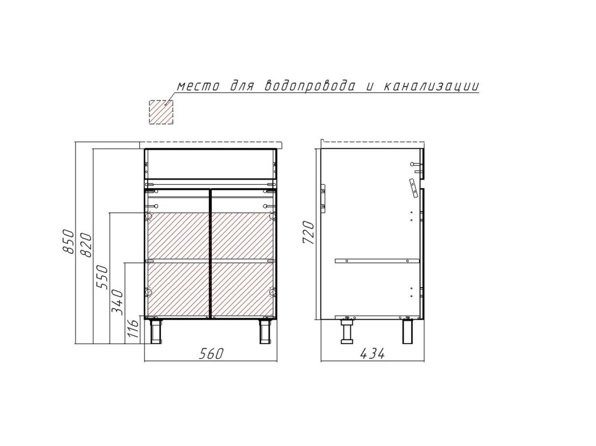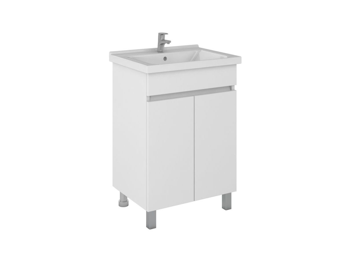 Тумбы под умывальник предусматривают удобную систему хранения, шириной также от 40 см до 80 см. Недавно серия пополнилась функциональным пеналом, шириной 60 см шириной. Корпус изготовлен из ЛДСП, фасад из ЛМДФ, обклеен пленкой ПВХ, что обеспечивает долговременную эксплуатацию. На петлях дверей установлены доводчики. У напольной мебели возможна регулировка ножек до 30 мм. Вся серия поставляется в собранном виде.