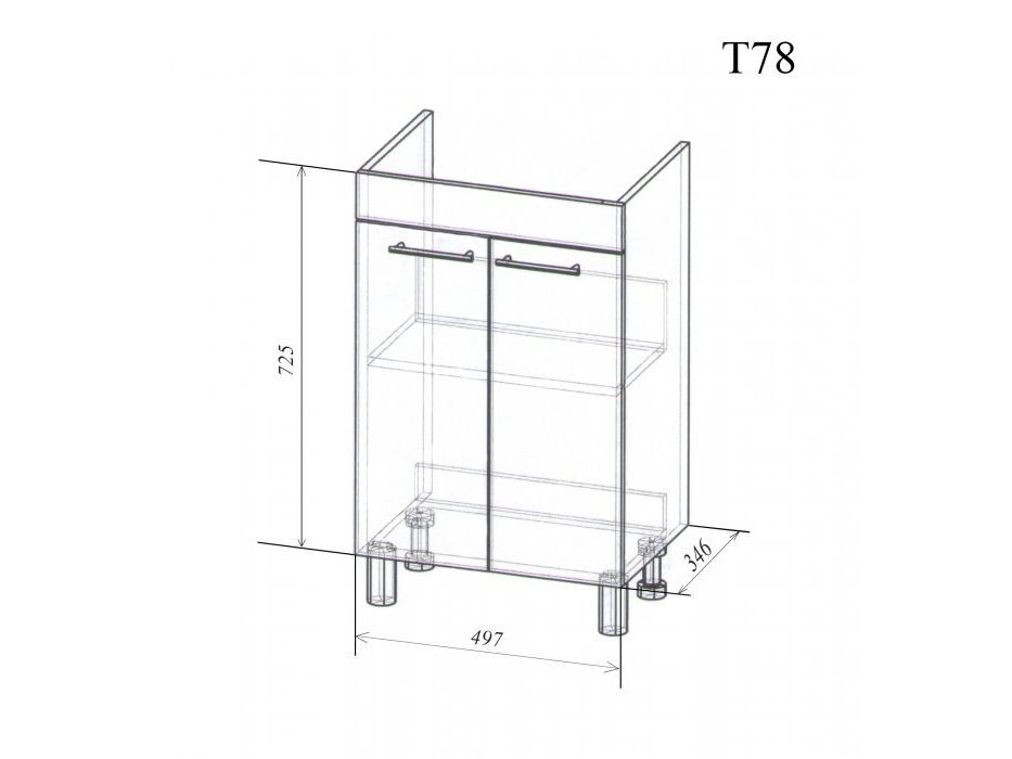 Дверцы снабжены мебельными петлями с доводчиками, которые обеспечивают мягкое доведение и бесшумное закрывание.