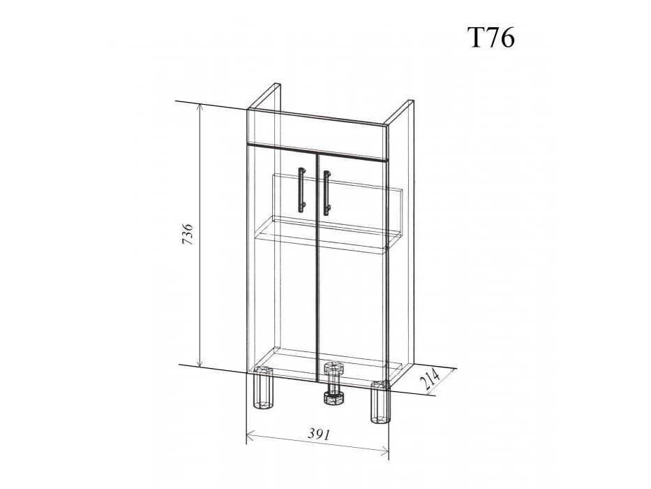 За распашными дверцами две вместительные полки, которые предназначены для хранения необходимых в ванной комнате вещей, задняя царга-ограничитель не дает вещам упасть.