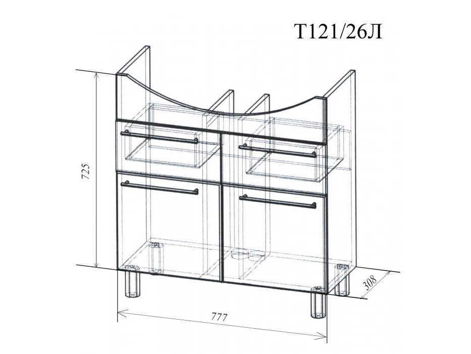 Боковины - влагостойкие плиты МДФ покрытые пленкой ПВХ. Внутренние элементы из влагостойкой ЛДСП. Материалы обладают хорошей устойчивостью к механическим повреждениям и высокой влагостойкостью |