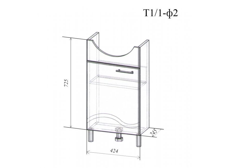 Фасад изделия из влагостойкой МДФ с покрытием ПВХ пленкой. Пленка защищает изделие от повреждений негативных факторов чистящих и моющих средств. На фасаде нанесена фрезеровка в форме двойной волны |