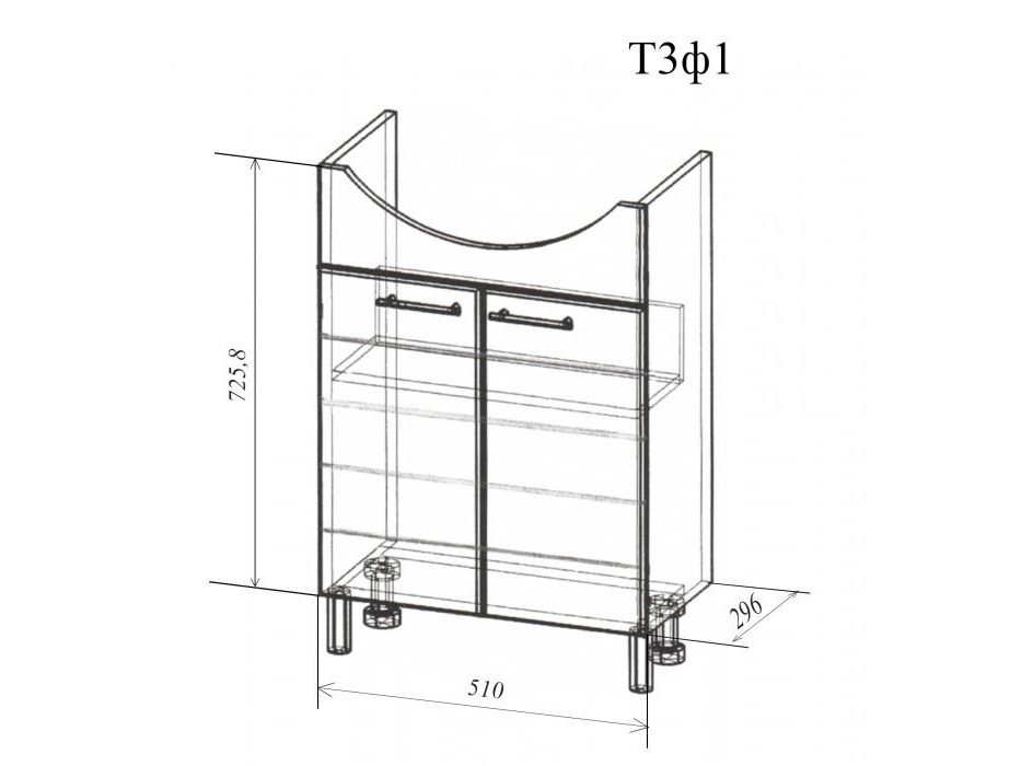 Модель функциональна: на просторных полочках за распашными дверцами можно разместить все необходимые в ванной комнате вещи.