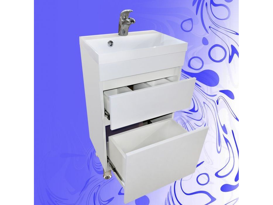 Тумба выполнена под акриловыйумывальник Andrea 50, также может комплектоваться соразмернымумывальником Classica 50 или Marko-6/500.