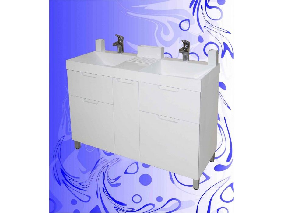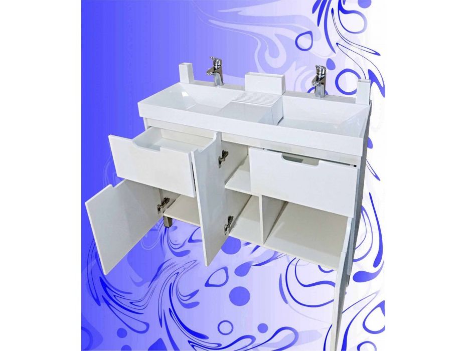 Тумба изготовлена под двойной умывальник Sozvezdie 1200 с объединенным сливом.