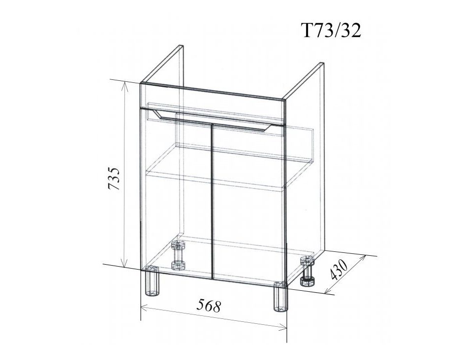 За распашными дверцами тумбы находится вместительное отделение для хранения, которое разделено на две части горизонтальной полочкой, задняя царга-ограничитель не дает вещам упасть.