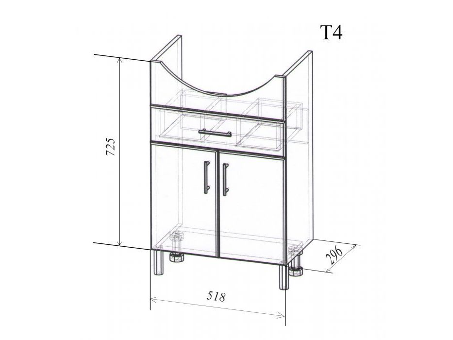 Нижнее отделение тумбы имеет распашные дверцы, поможет разместить объемные вещи, чистящие, моющие средства.