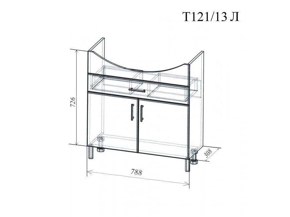 Боковины - влагостойкие плиты МДФ покрытые пленкой ПВХ. Внутренние элементы тумбы из влагостойкой ЛДСП |