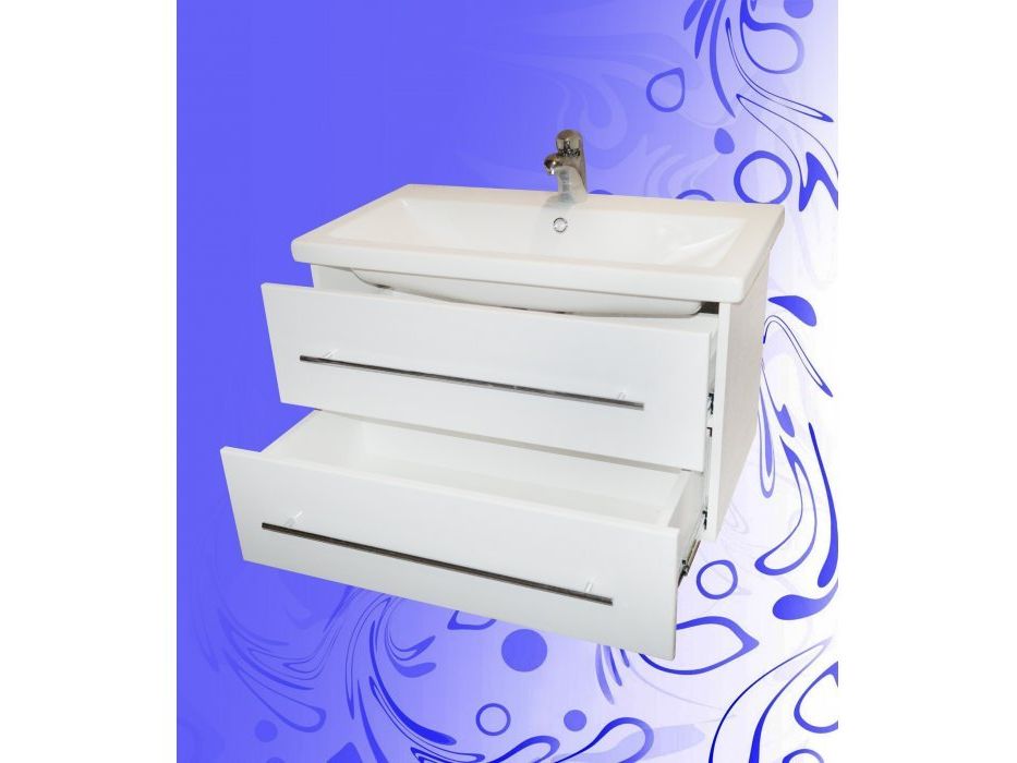 Тумба может комплектоваться умывальником Como 80 или соразмерным умывальником Миранда 80Хромированные ручки-рейлинги эффектно смотрятся на белоснежном фасаде.
