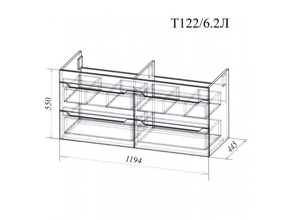 Боковины выполнены из влагостойких плит МДФ. Внутренние элементы выполнены из влагостойкой ЛДСП |