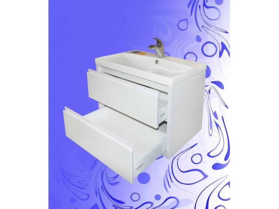 Компактная, красивая, функциональная тумба ВАЛЕНСИЯ может комплектоваться прямоугольным умывальником Como 70Основные особенности модели: модный и интересный фасад выдвижных ящиков из ультра белого стекла на основе МДФ, вместо традиционных ручек на верхней панели ящиков горизонтальные вырезы, выдвижные ящики имеют направляющие B-BOX, что обеспечивает равномерный и бесшумный ход, мягкую амортизацию и доведение.