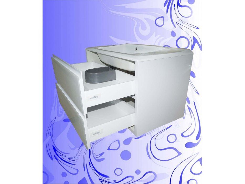 Боковые стенки тумбы (25мм) изготовлены из влагостойких плит МДФ с покрытием ПВХ пленкой. Внутренние элементы из влагостойких плит ЛДСП |