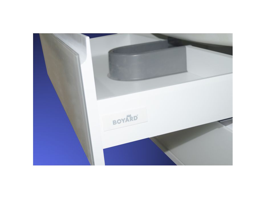Боковые стенки тумбы (25мм) изготовлены из влагостойких плит МДФ с покрытием ПВХ пленкой. Внутренние элементы из влагостойких плит ЛДСП |