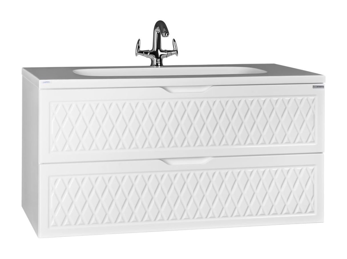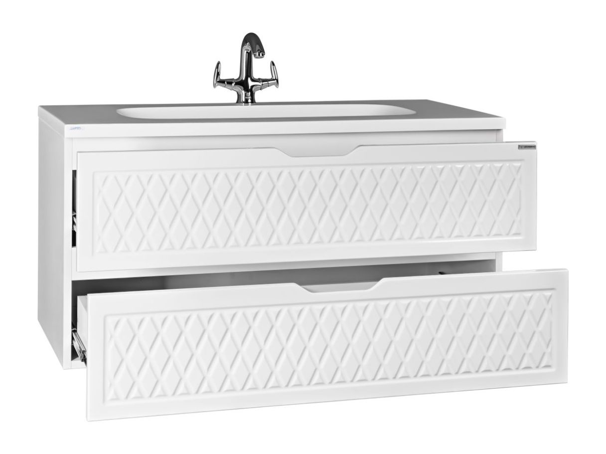 Тумба под умывальник 3D СТЕЛЛА 100 – подвесная и имеет два выдвижных ящика. Завершает серию напольный пенал 3D – 50см в ширину.
