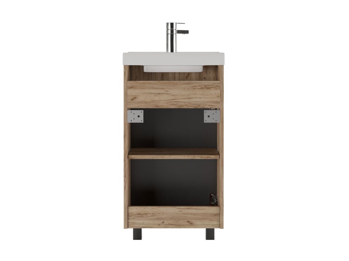 Тумбы под умывальник «ФОСТЕР», в зависимости от размера представлены с одной/двумя дверцами и полками с правой стороны.