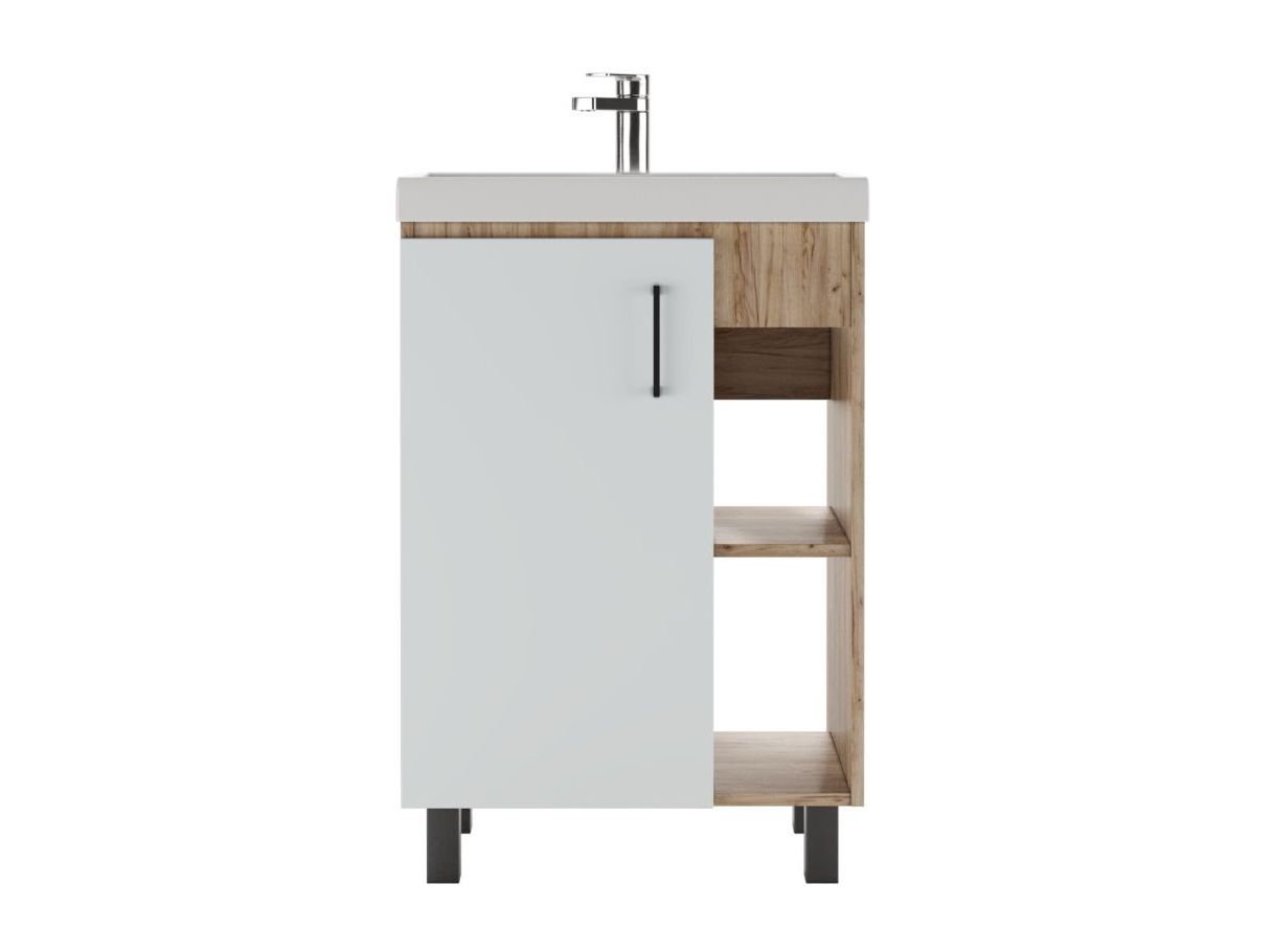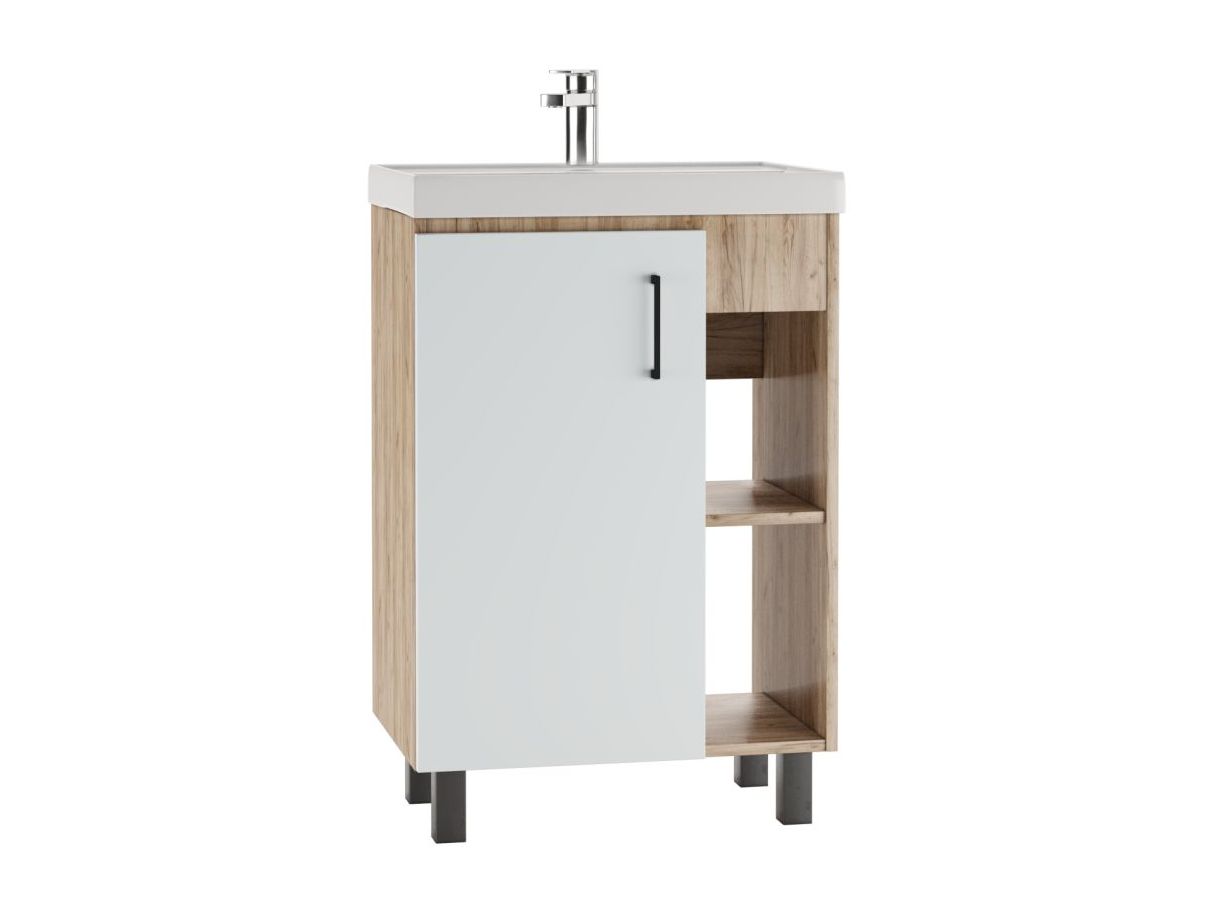 Тумбы под умывальник «ФОСТЕР», в зависимости от размера представлены с одной/двумя дверцами и полками с правой стороны.