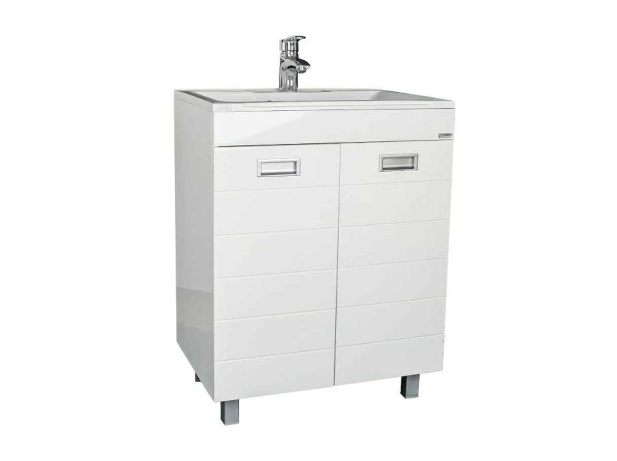 Напольная тумба под умывальник CUBE 65 ELEN с двумя дверцами и полкой по середине вместится даже в самый компактный санузел. Тумба под умывальник CUBE 75 ELEN имеет два отсека, в одном место для туалетных принадлежностей, с полкой по середине, второй отсек предназначен для корзины для белья.