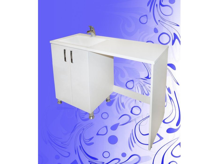 Тумба со встроенным отделением под стиральную машину (шириной 60см) разработана под умывальник Даллас со смещенной столешницей шириной 120см.