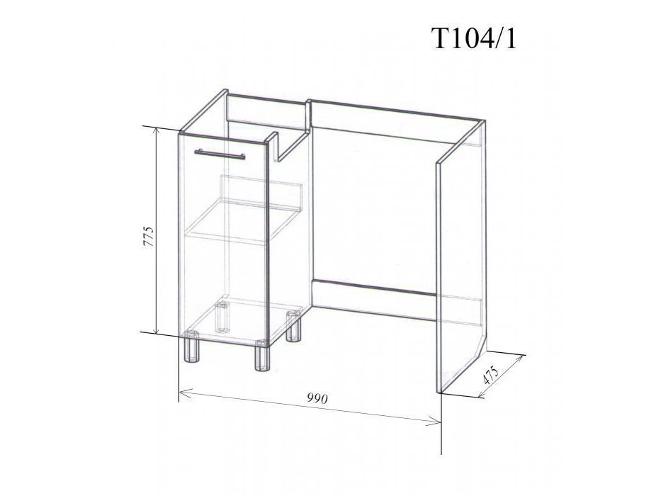 Тумба со встроенным отделением под стиральную машину (шириной 60см) разработана под цельнолитой умывальник Даллас со смещенной столешницей шириной 100см.