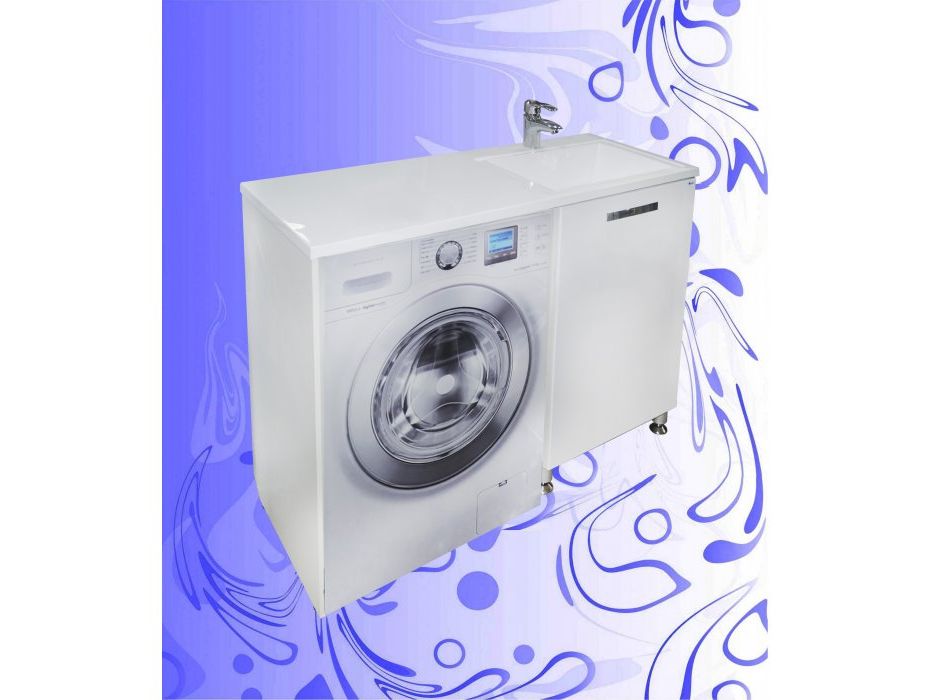 Тумба со встроенным отделением под стиральную машину(шириной 60см) разработана под цельнолитой умывальник Даллас со смещенной столешницей шириной 120см.