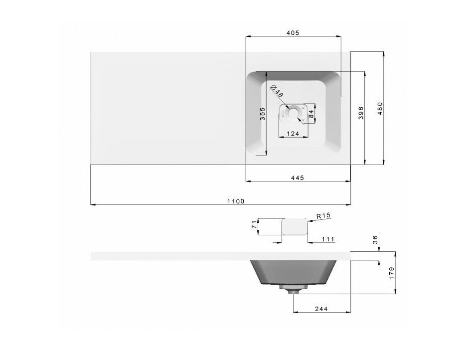 Небольшая тумба со встроенным отделением под стиральную машину разработана под цельнолитой умывальник Даллас (или умывальник Kamilla) со смещенной столешницей шириной 1100 мм.