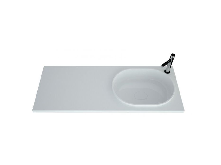 Тумба со встроенным отделением под стиральную машину(шириной 60см) разработана под цельнолитой умывальник Bruks с овальной чашей и смещенной столешницей шириной 120см.