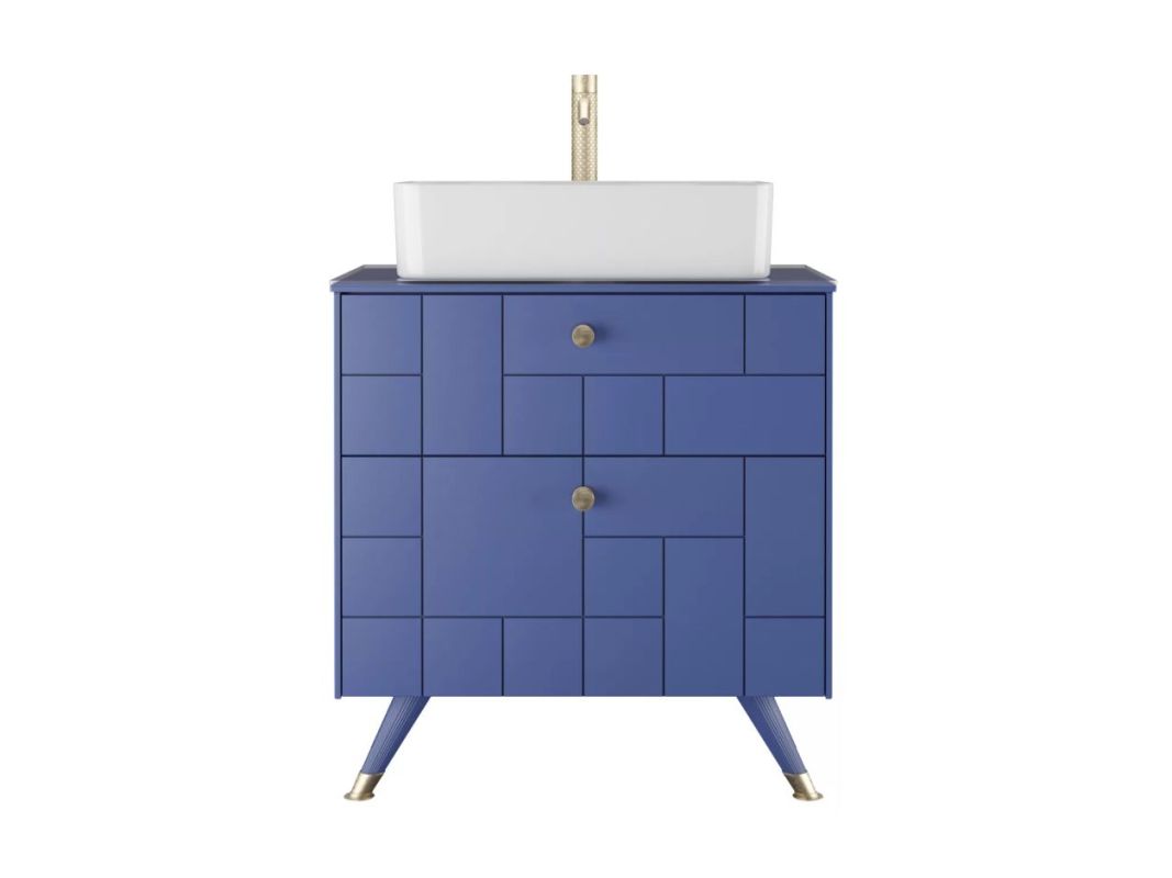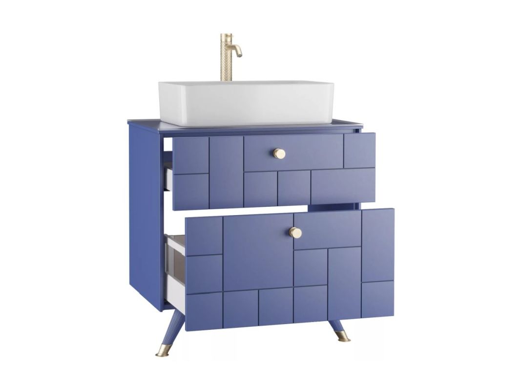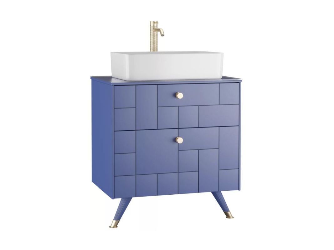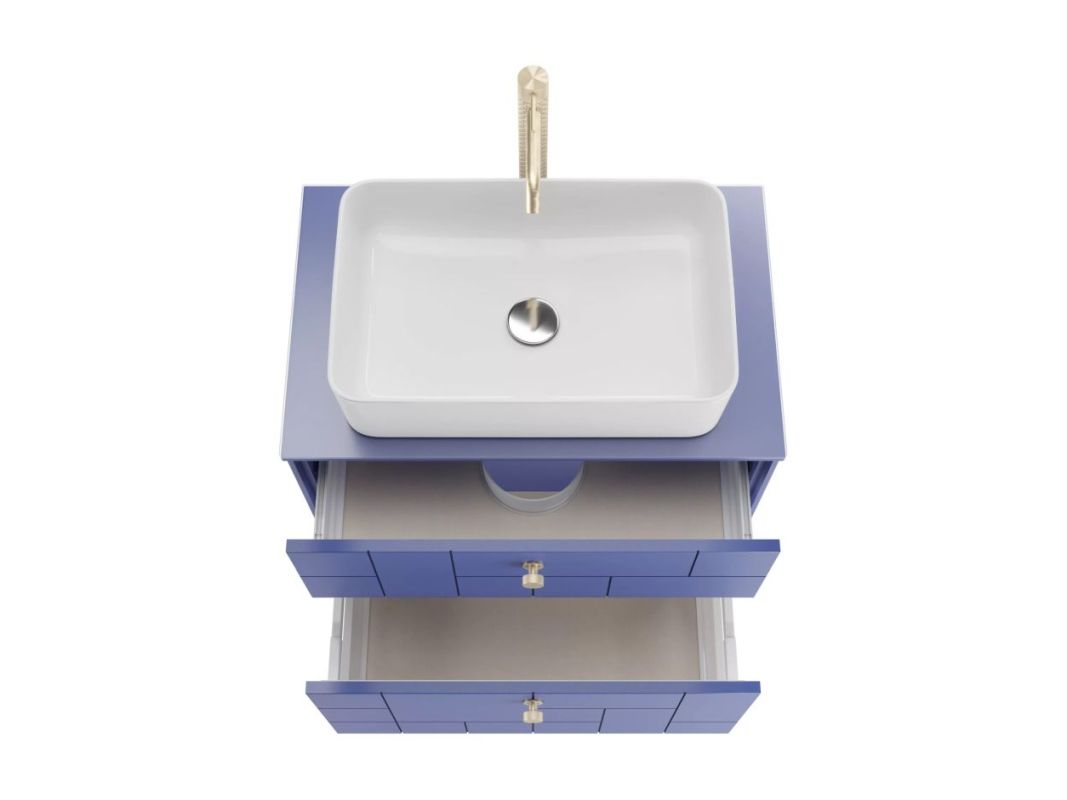 Дополнительно необходимо приобрести умывальник: Тумба подвесная под умывальник "Олимпия 56" FOUR 70 синий матовый с двумя ящиками LEVEL