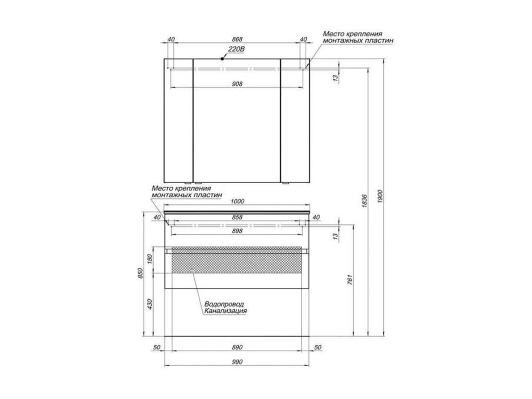 Тумба с раковиной Aquanet Алвита 100 (цвет белый) придаст интерьеру ванной комнаты нотку особого очарования и уникальности, благодаря своей нестандартной красивой отделке. Покрытие имеет высокие эксплуатационные характеристики, в частности, влагонепроницаемость, прочность и простоту в уходе. Современный дизайн демонстрирует аккуратный минимализм геометрически четких форм, где основная идея подчинена максимальной функциональности. Вместительная тумба шириной 100 см с верхним и нижним выдвижными ящиками создает дополнительное пространство, где будут надежно скрыты от влаги банные принадлежности. Ящики тумбы закрываются легко и бесшумно, благодаря механизму доводчика. Раковина «Фортуна» имеет уникальную конструкцию слива: вместо привычного расположения по центру, он находится в скрытом отсеке под съемной крышкой. Смещение слива и сифона к стене, в сторону канализационного отвода, избавляет от необходимости менять устройство верхнего ящика тумбы и делать в нем выемку. Теперь он свободно передвигается под раковиной и имеет большую вместимость.