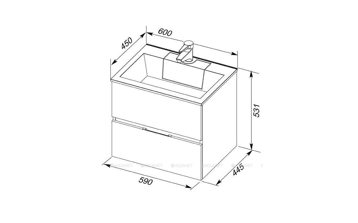 - Тумба: Aquanet Алвита 60, цвет белый, 2 выдвижных ящика (184301)