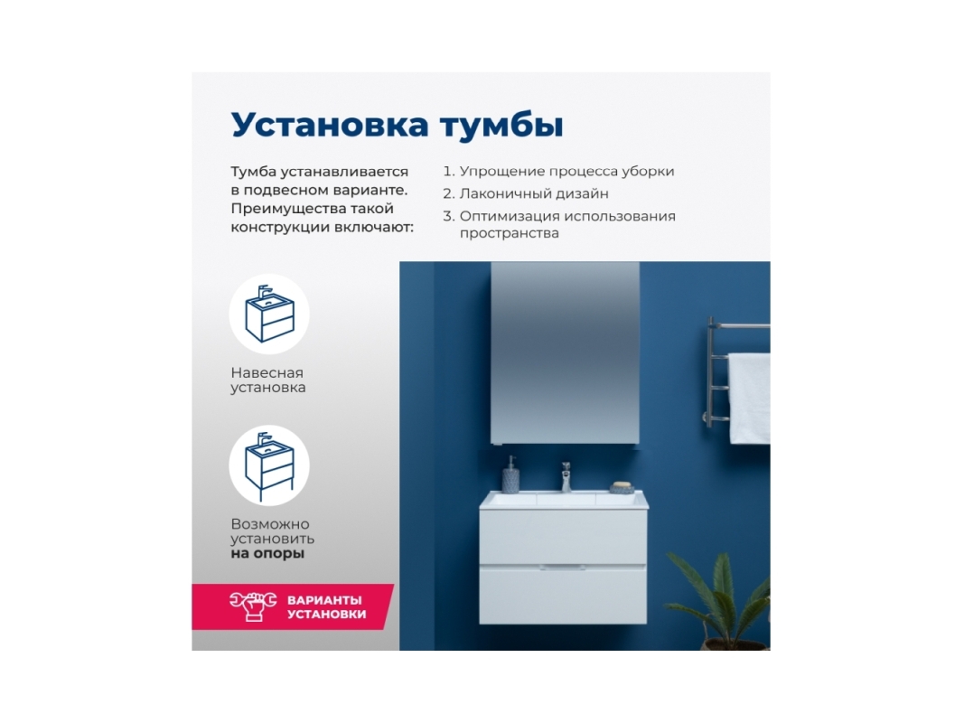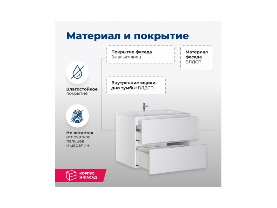 Тумба Акванет Алвита придаст интерьеру ванной комнаты нотку особого очарования и уникальности, благодаря своей нестандартной красивой отделке. Покрытие имеет высокие эксплуатационные характеристики, в частности влагонепроницаемость, прочность и простоту в уходе. Современный дизайн демонстрирует аккуратный минимализм геометрически четких форм, где основная идея подчинена максимальной функциональности. Вместительная тумба с верхним и нижним выдвижными ящиками создает дополнительное пространство, где будут надежно скрыты от влаги банные принадлежности. Ящики тумбы закрываются легко и бесшумно, благодаря механизму доводчика. Раковина «Фортуна» имеет уникальную конструкцию слива: вместо привычного расположения по центру, он находится в скрытом отсеке под съемной крышкой. Смещение слива и сифона к стене, в сторону канализационного отвода, избавляет от необходимости менять устройство верхнего ящика тумбы и делать в нем выемку. Теперь он свободно передвигается под раковиной и имеет большую вместимость.
