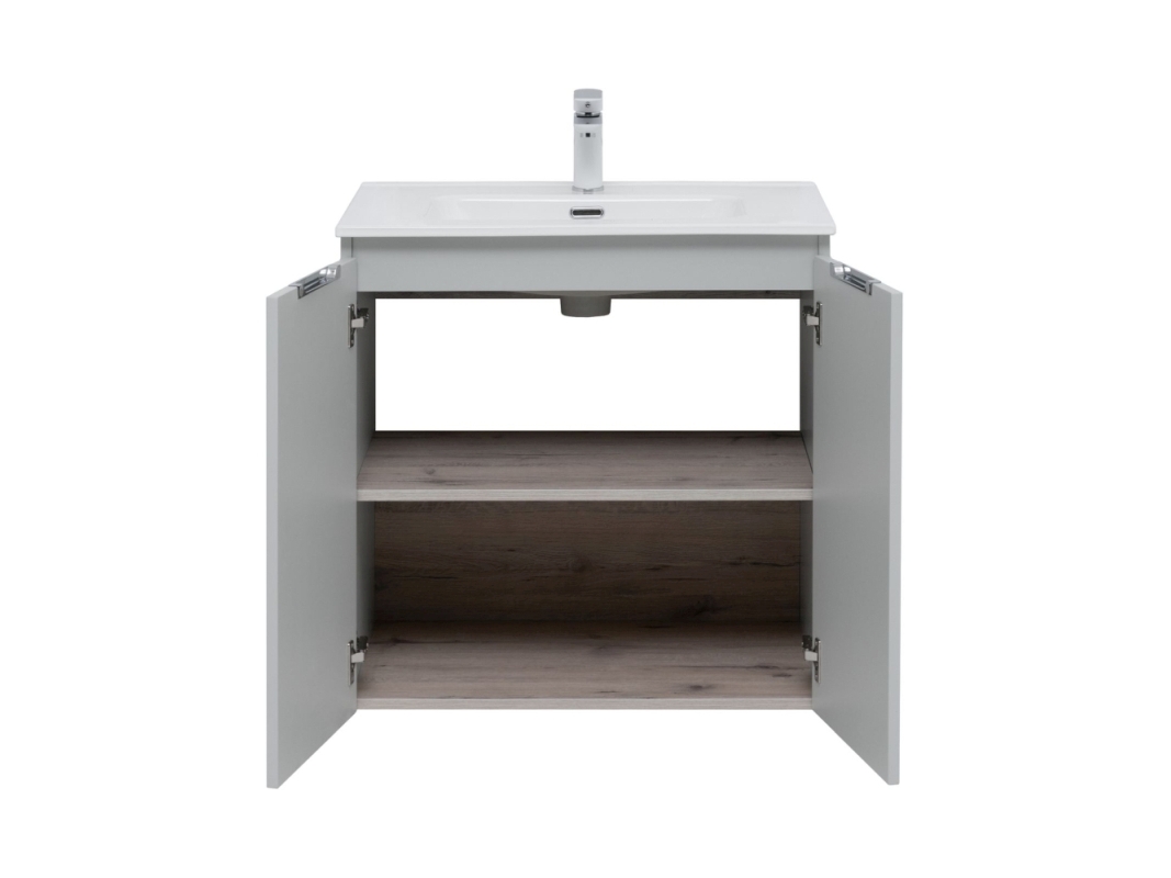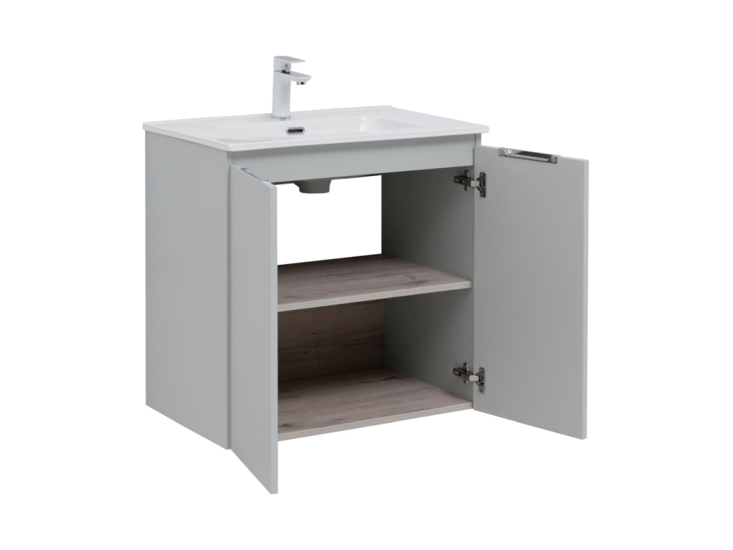 Тумба под раковину в ванную комнату бренда Aquanet выполнена в стиле модерн и входит в нашу коллекцию мебели Алвита New. Представленная коллекция мебели для ванных комнат осчастливила сотни покупателей, так как они приобрели сочетание дизайна, качества и функциональности. Важный момент при выборе тумбы для умывальника / раковины - это материалы. Они должны быть адаптированы к эксплуатации в условиях повышенной влажности. Влагостойкий ЛДСП - материал, из которого выполнен корпус изделия, фасад - из влагостойкого ЛДСП. При монтаже подвесной тумбы в первую очередь необходимо учесть ширину, которая равна 70 см. Тумба в цвете серый освежит Вашу ванну и будет отлично сочетатся с сантехникой. Тумба в ванную также обеспечит вам экономию места, так как в ней предусмотрены полки, куда можно поместить средства личной гигиены.