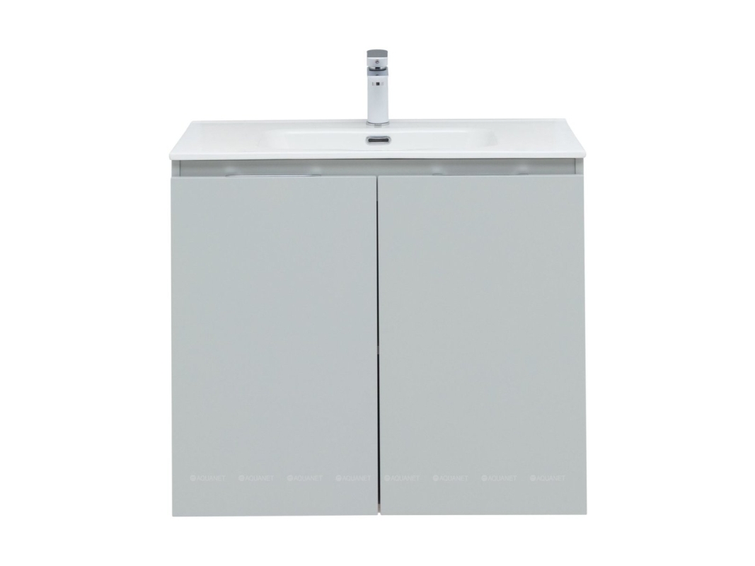 Тумба с раковиной Aquanet «Алвита» New 80 в сером цвете. Две дверцы со скрытыми горизонтальными ручками закрывают вместительный отсек, состоящий из одной полки. Пространство используют для компактного хранения средств гигиены, бытовой химии или косметики. Корпус и фасады выполнены из влагостойкого материала ЛДСП. Модель подвесного типа обеспечивает простоту уборки пола и дополнит ванную комнату в стилях модерн, минимализм, сканди. Размеры — 800х457х684 мм.