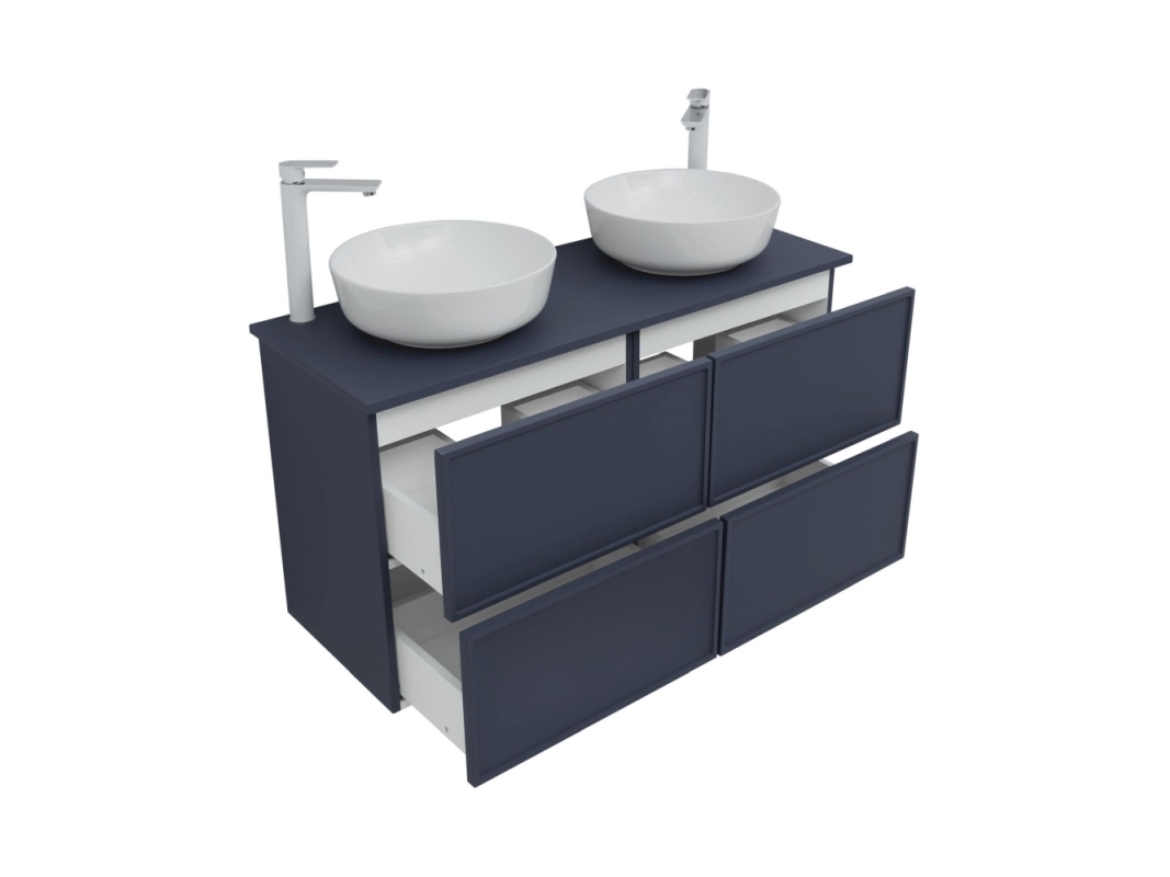 В столешнице Арт предусмотрены 2 отверстия: под слив раковины и под смеситель с установкой на столешницу. Расположение смесителя – справа от чаши раковины