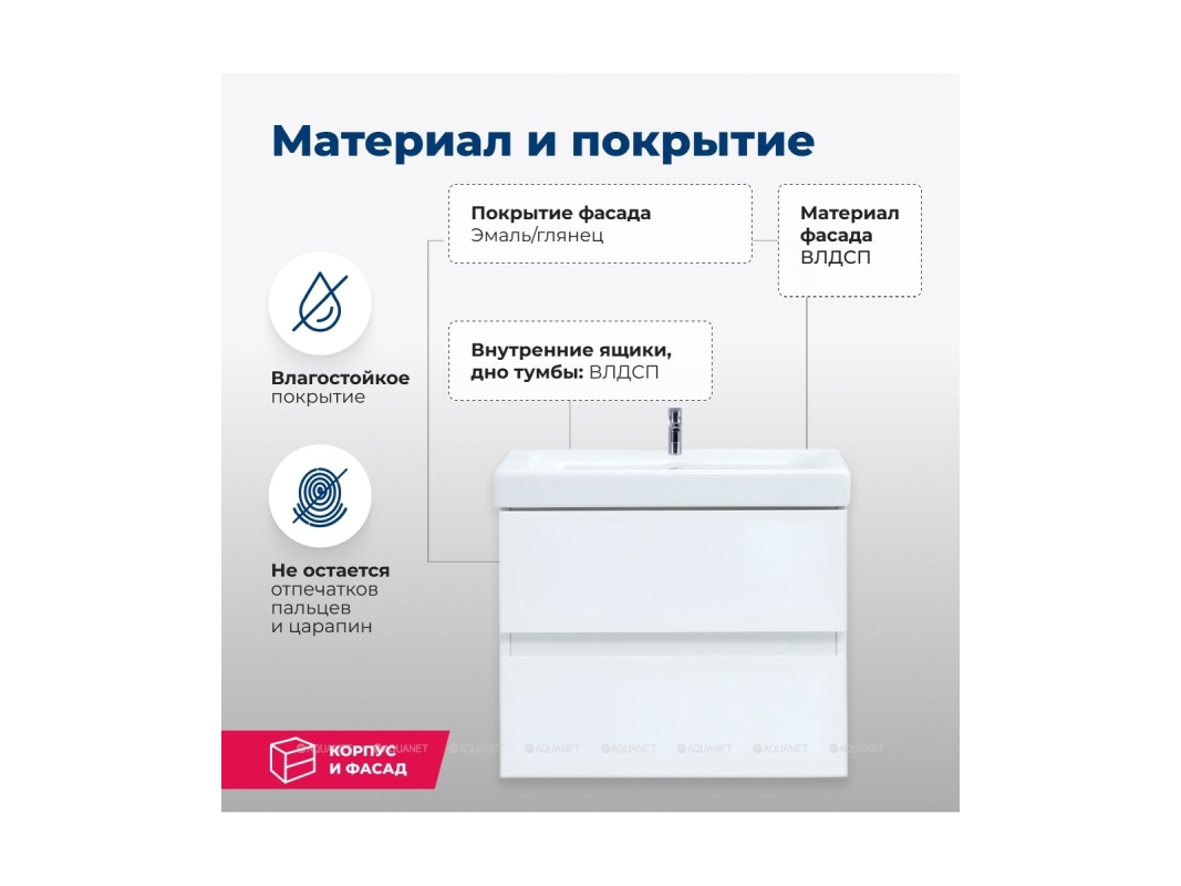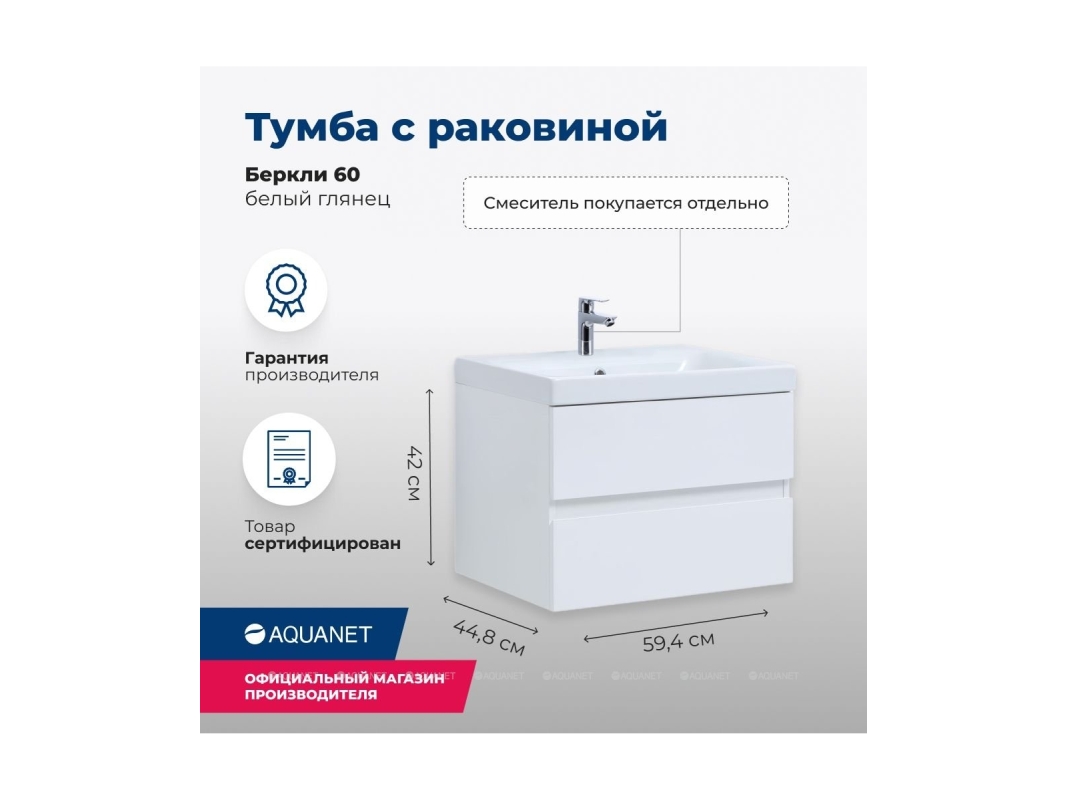 Беркли 60 белый глянец имеет изюминку - контрастную декоративную полосу между ящиками в цвете «белый глянец». Корпус и фасады тумбы выполнены из влагостойкого ЛДСП и покрыты глянцевой белой эмалью. В конструкции тумбы использованы интегрированные ручки без острых краев и внутренних углов.