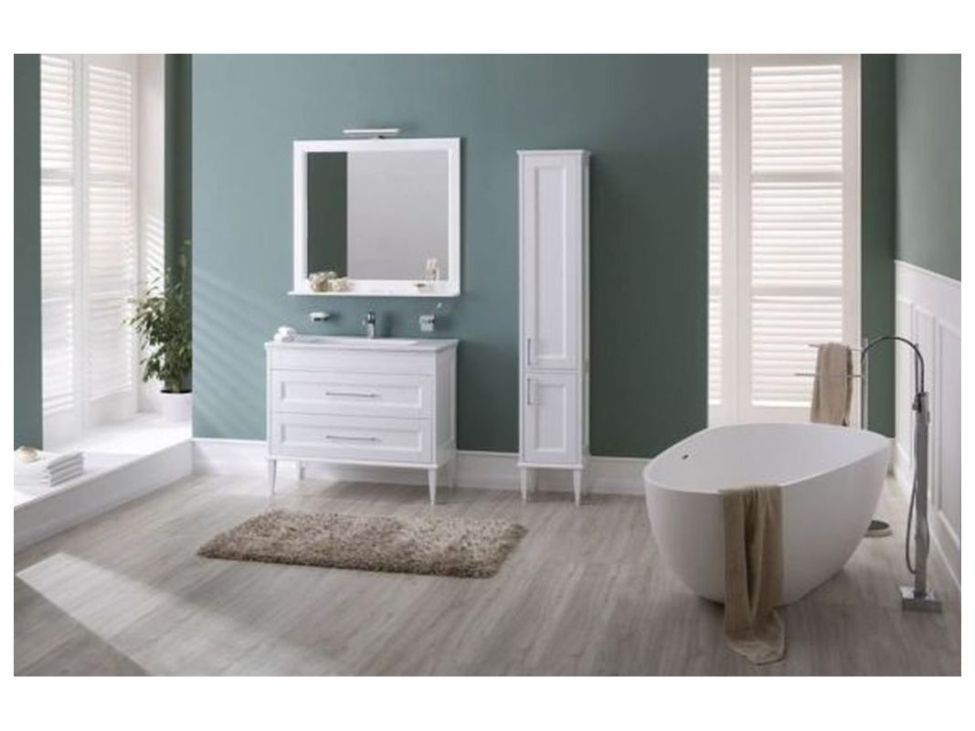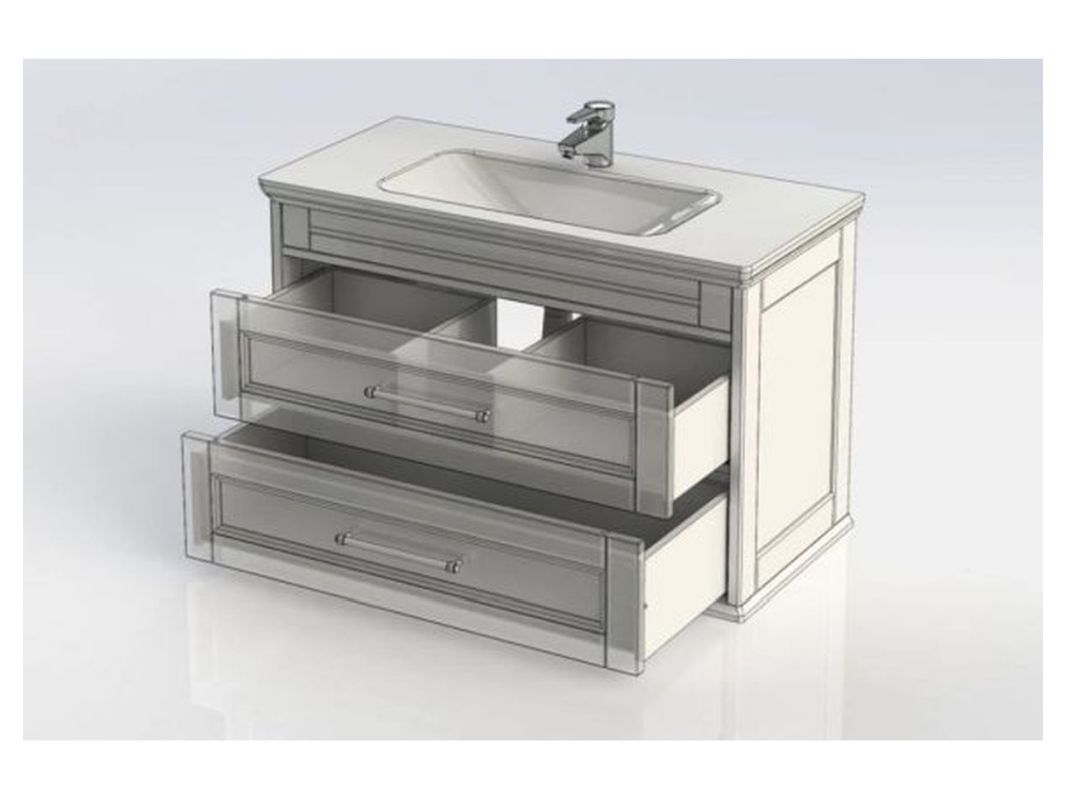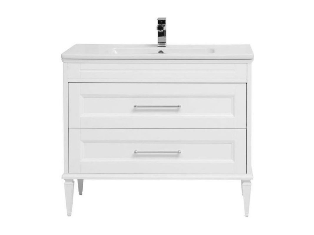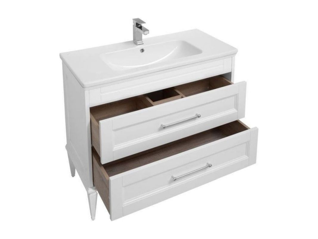 Тумба Aquanet Бостон М 100 белого цвета интересна внешне. Фрезеровка по белоснежным матовым фасадам и по боковым ее частям придает внешнему виду изделия шириной 100 см достойный и благородный вид, свойственный классике. Но утонченные ручки производства известной турецкой фирмы System, словно ниточки поблескивающие на фасадах, визуальная легкость изделия напоминает о модерне. Тумба с двумя выдвижными ящиками, оборудованными доводчиками производства компании Hettich, вмещает огромное количество полезных вещей. В верхнем ящике предусмотрено три отделения, что делает его пространство более удобным для использования: все вещи будут на своих местах. Нижний ящик просторный и в него можно поставить многочисленные шампуни, гели, муссы, маски, кремы и другие емкости. Модель имеет два варианта монтажа. Базовый – подвесной. Кроме того, специально для этой коллекции были разработаны очень элегантные ножки, выполненные из массива и окрашенные в белый цвет. С такими ножками тумба приобретает благородный вид и еще больше тяготеет по своему стилю к классике.