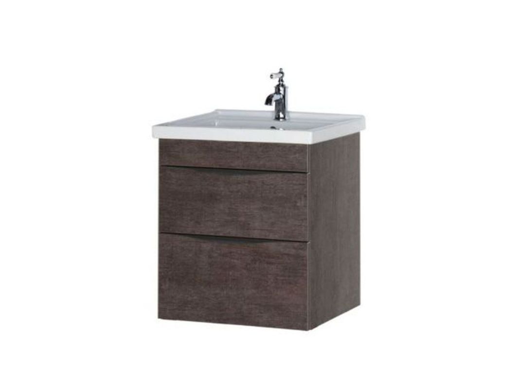 Тумба в ванную комнату Эвора с отделкой фасада и корпуса в цвете и структуре натурального дерева — «дуб антик». Мебель с благородным шоколадным оттенком отделки наделяет ванную комнату уютом и создает атмосферу истинной роскоши. Тумба имеет вместительные выдвижные ящики и хромированные ручки нестандартной формы. Механизм доводчика обеспечивает плавное движение и закрытие ящиков. Широкая керамическая раковина производства известного бренда Sanovit располагается в виде столешницы. Тумба Акванет Эвора подвешивается к стене. Если необходим напольный вариант, можно дополнительно приобрести комплект ножек.