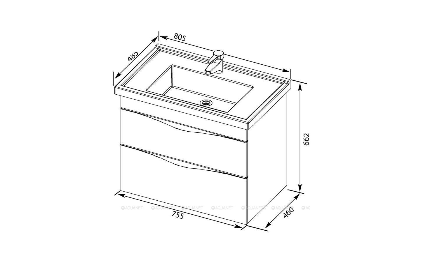- Тумба: Aquanet Эвора 80, цвет дуб антик, 2 раздвижных ящика (183002)