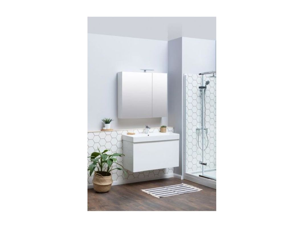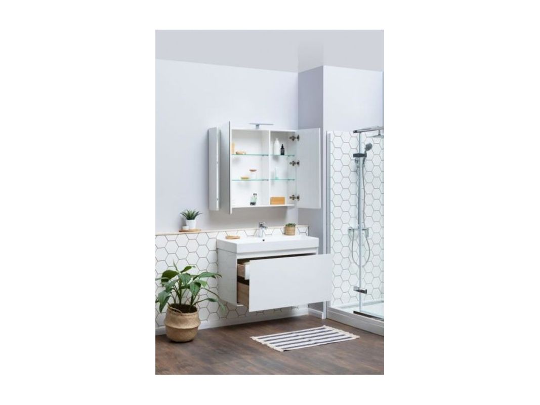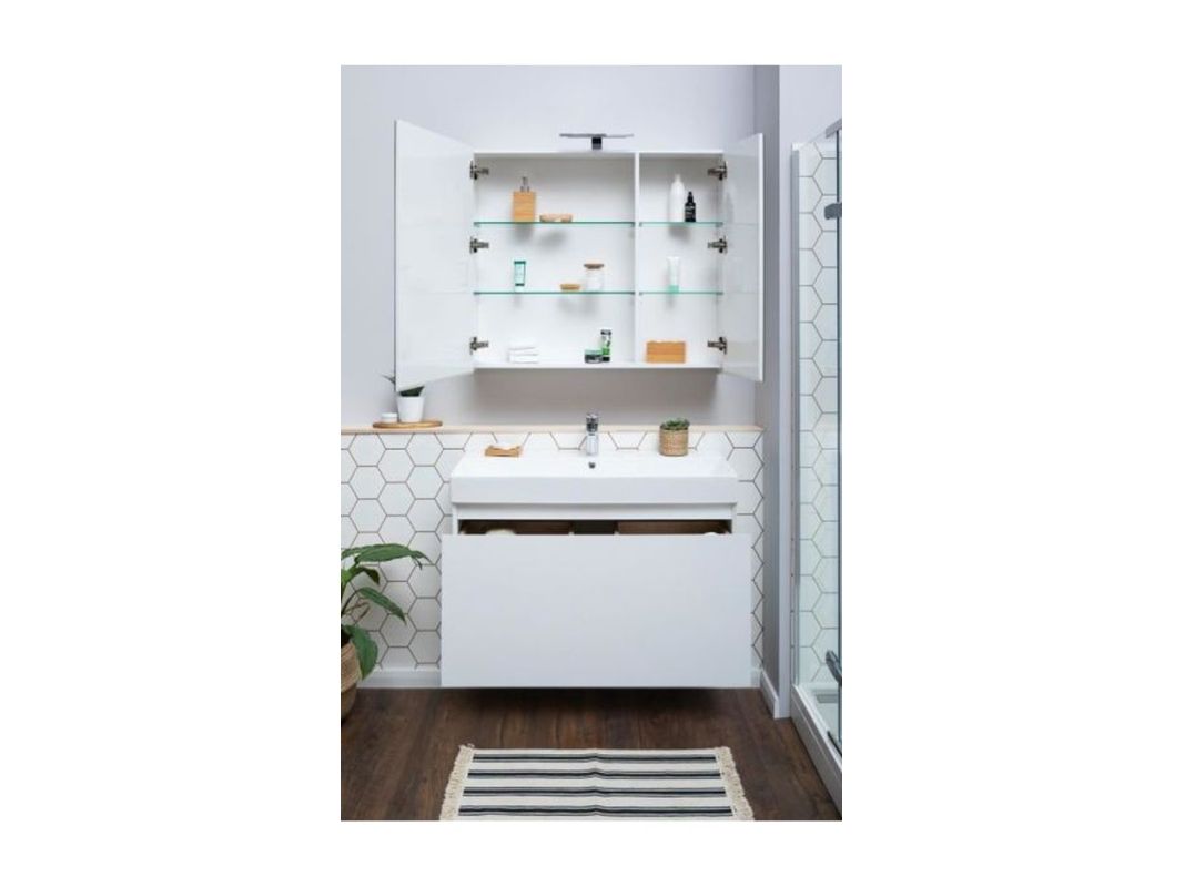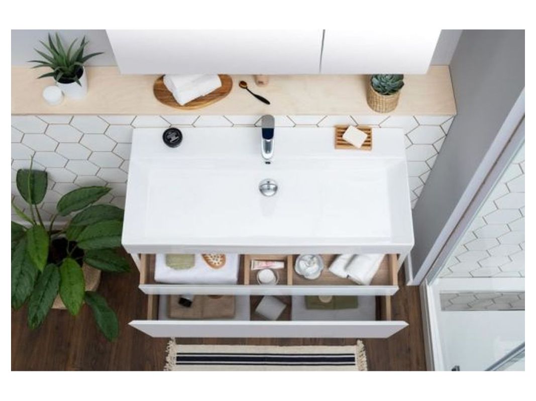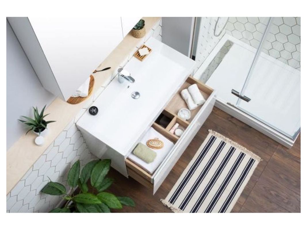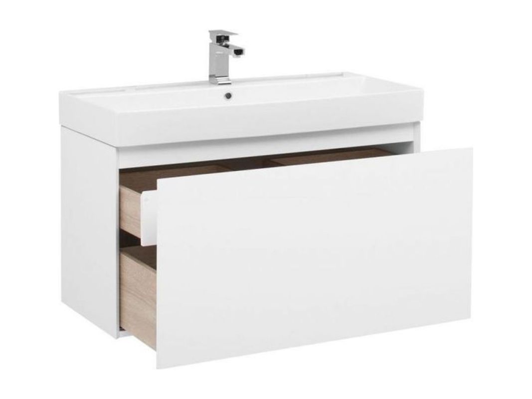 Тумба с раковиной Aquanet Йорк 100 кажется довольно-таки простой внешне, но за видимой простотой кроется тщательная работа над каждой линией, над каждой деталью. Обратите внимание на интегрированную ручку, которой по сути не видно, но при открывании выдвижного ящика она поражает удобством использования. Радует глаз зеркальная чистота глянцевой поверхности фасада из МДФ. Мебель белоснежная. Цветовой акцент появляется при выдвижении ящика тумбы, так как внутренние детали сделаны в цвете «дуб сонома». Сочетание выглядит благородно и эстетично, при этом не изменяя общей идее лаконичности во всем. Ящик в тумбочке один, но внутри него прячется еще одна зона хранения, в которой можно разложить по местам разнообразные мелочи. В системе выдвижения использована фурнитура немецкого производителя Hettich. Тумба шириной 100 см комплектуется керамической раковиной Sanovit. Она может быть как подвесной, так и напольной – на выбор покупателя.