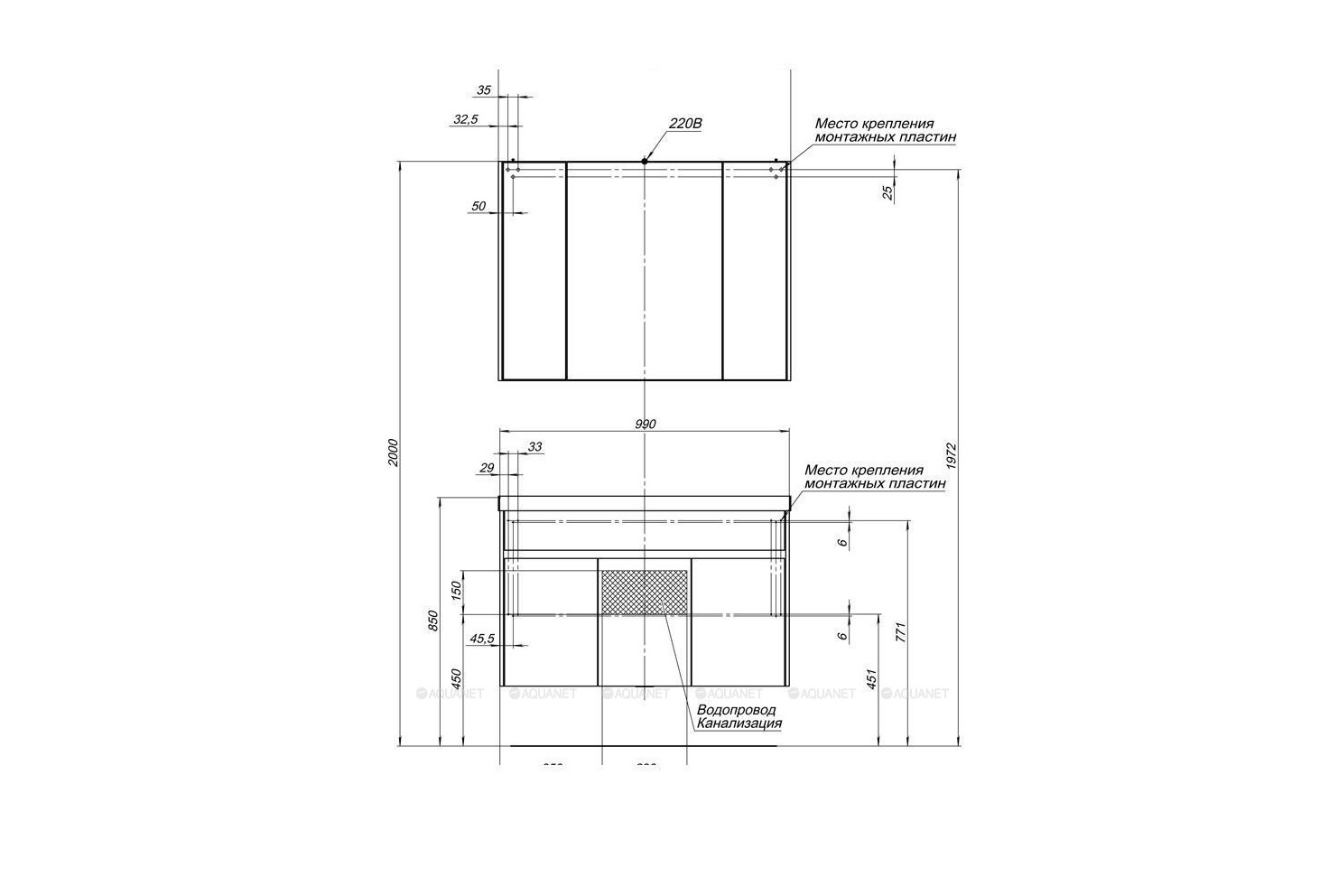 - Тумба: Aquanet Латина 100, цвет бордо, 1 распашная дверца, 2 выдвижных ящика (179928)