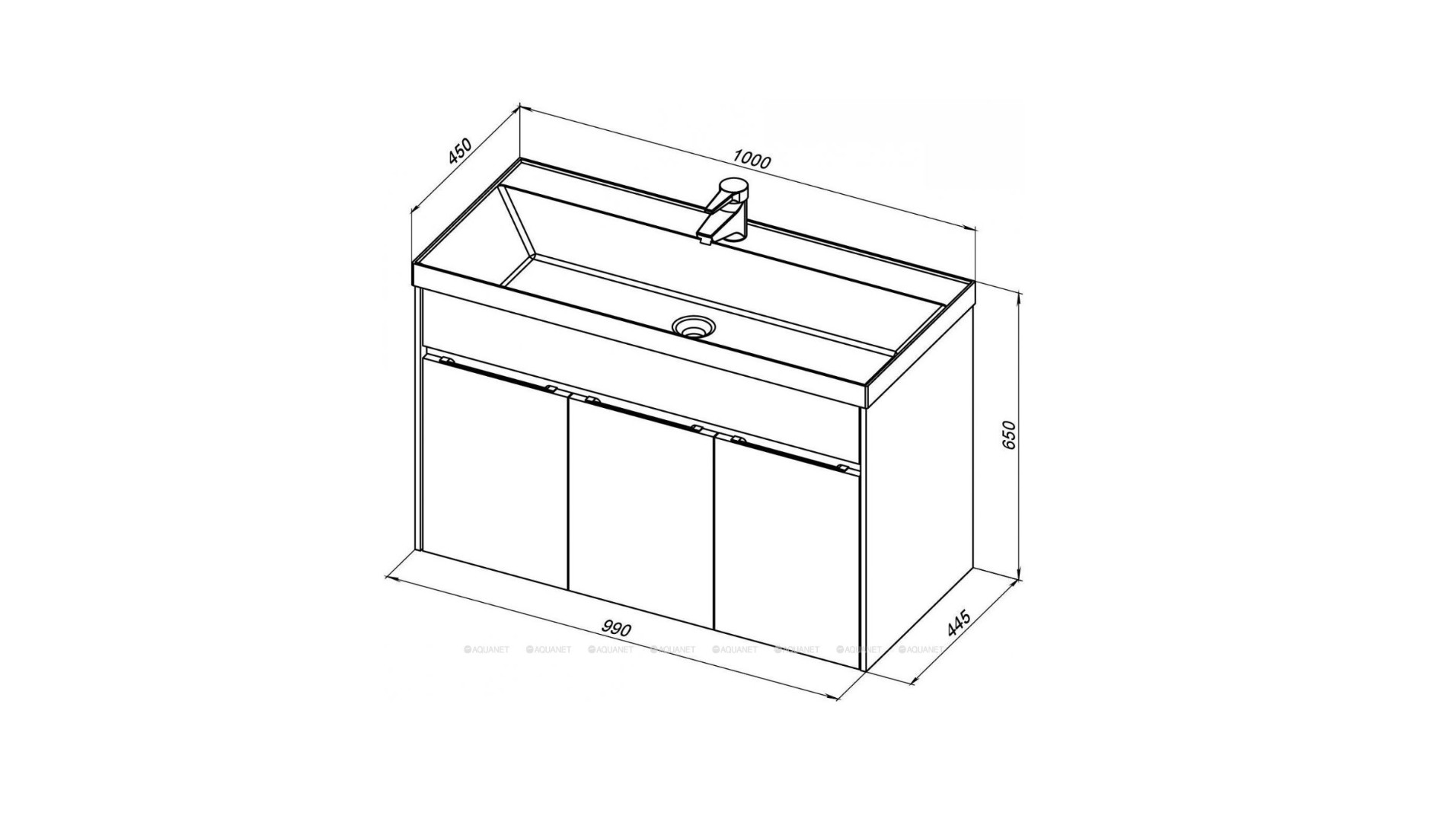Среди достоинств комплекта также хромированные ручки ящиков и глубокая прямоугольная раковина из литьевого мрамора, что очень актуально для современных интерьеров.