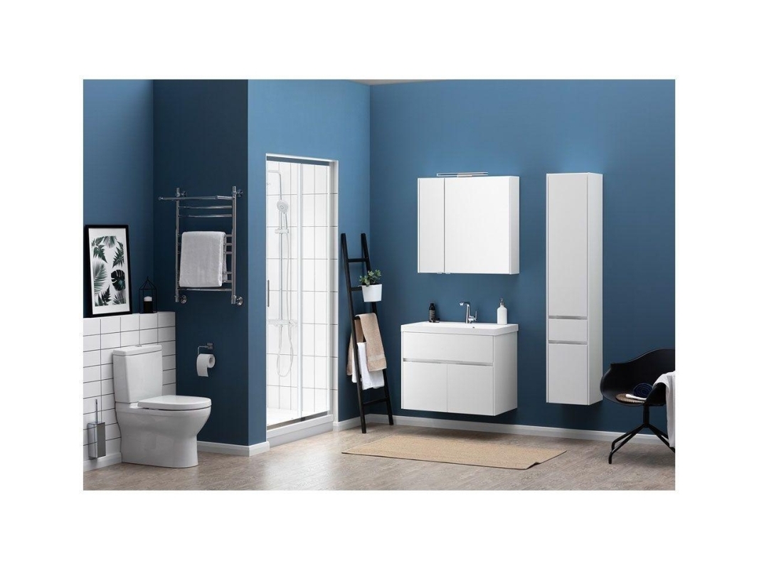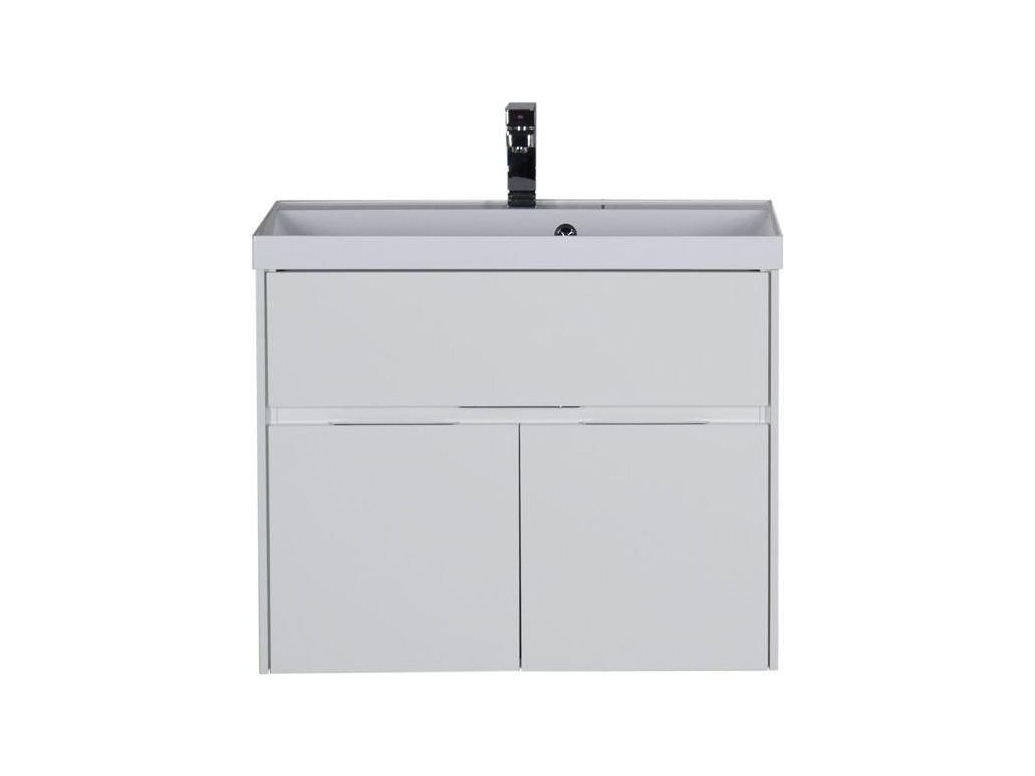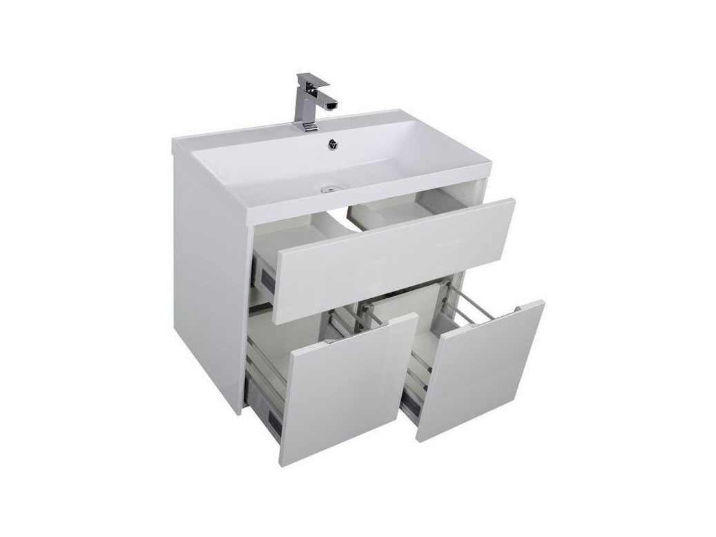 Тумба с раковиной Акванет Латина — новое предложение для тех, кто решил создать ванную комнату в стиле «модерн». Современные лаконичные формы такой мебели позволяют оснащать даже небольшие по площади ванные комнаты весьма рационально. Вместительные отделения трех выдвижных ящиков тумбы и полок за распашной дверцей сокроют в себе белье и полотенца. Ящики новых коллекций мебели Aquanet снабжены доводчиками плавного закрывания. Среди достоинств комплекта также хромированные ручки ящиков и глубокая прямоугольная раковина из литьевого мрамора, что очень актуально для современных интерьеров. Белое глянцевое покрытие «Латины» соответствует представлениям о чистоте и здоровье и гармонирует с белизной ванны, кабины или душевого уголка в ванной комнате. <
