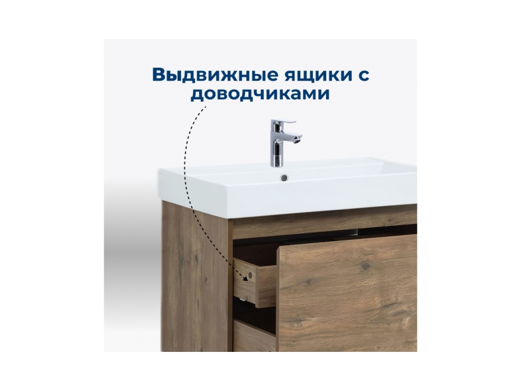 Тумба с раковиной Aquanet Nova Lite 60 из влагостойкой ламинированной древесно-стружечной плиты в изысканном цвете «дуб рустикальный» имеет достойный вид. Фактура натурального дерева выглядит благородно, а подвесной монтаж придает визуальную легкость тумбе шириной 60 см. Она оборудована одним ящиком, при открывании которого обнаруживается еще один небольшой для мелочей. Фасад выполнен с декоративной интегрированной ручкой, не имеющей острых краев и внутренних углов, что обеспечивает удобство в эксплуатации и легкий уход за мебелью. Ящики комплектуются направляющими немецкого производства Hettich Quadro, оснащенными доводчиками. Неглубокая и стильная керамическая раковина «Латина» идеально подходит к тумбе.