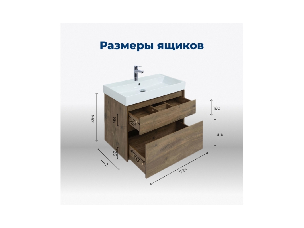 Тумба с раковиной Aquanet Nova Lite 75 из влагостойкой ламинированной древесно-стружечной плиты в изысканном цвете «дуб рустикальный» имеет достойный вид. Фактура натурального дерева выглядит благородно, а подвесной монтаж придает визуальную легкость тумбе шириной 75 см. Она оборудована двумя выдвижными ящиками. Ящики довольно вместительные и позволяют разместить все необходимое. Фасады выполнены с декоративной интегрированной ручкой, не имеющей острых краев и внутренних углов, что обеспечивает удобство в эксплуатации и легкий уход за мебелью. Ящики комплектуются направляющими немецкого производства Hettich Quadro, оснащенными доводчиками. Неглубокая и стильная керамическая раковина «Латина» идеально подходит к тумбе.