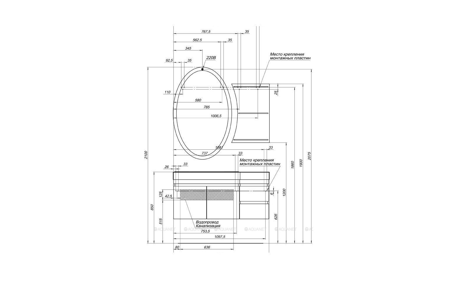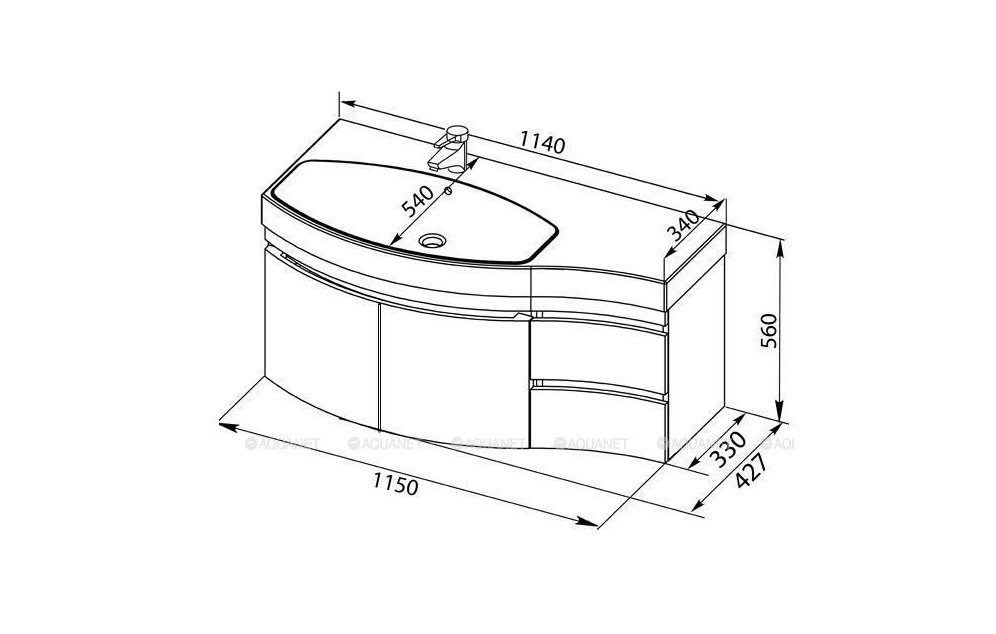 - Тумба: Aquanet Опера 115, левая, цвет белый, 2 распашные дверцы, 2 выдвижных ящика (169613)