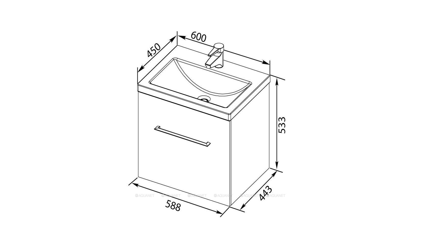 - Тумба: Aquanet Порто 60, цвет белый, 1 выдвижной ящик (195730)