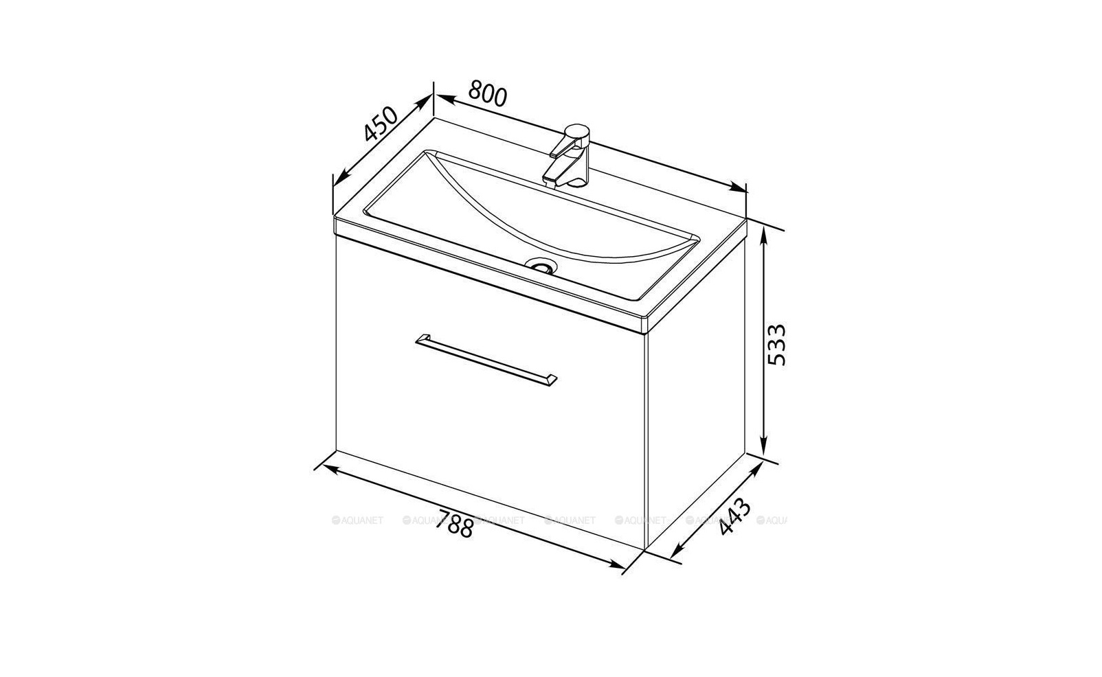 - Тумба: Aquanet Порто 80, цвет белый, 1 выдвижной ящик (195731)