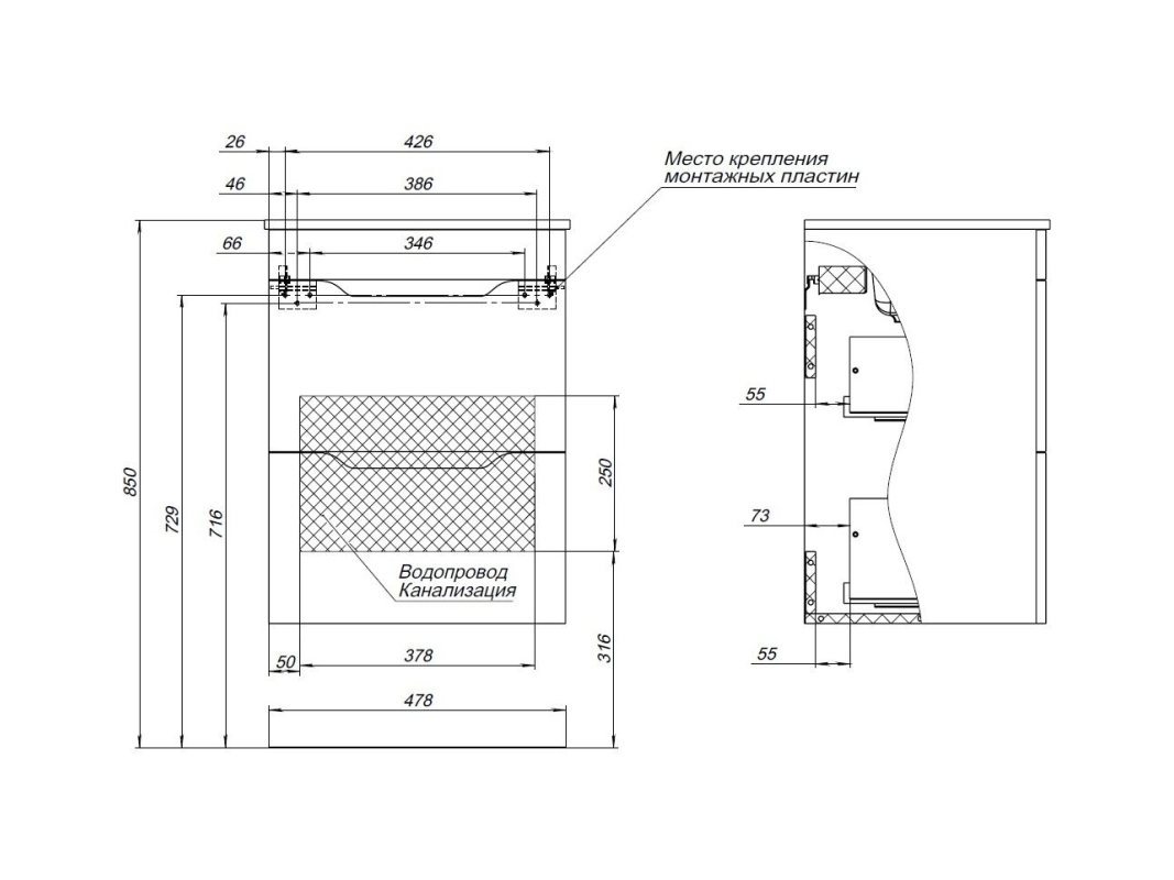 Внутренние детали изготовлены из влагостойкой ЛДСП белого цвета, что обеспечивает не только эстетичный вид, но и долговечность конструкции на долгие годы использования. Погрузитесь в мир изысканности и удобства с тумбой под раковину Aquanet Практика 50 белый матовый (2 ящика) - идеальным выбором для вашей ванной комнаты.