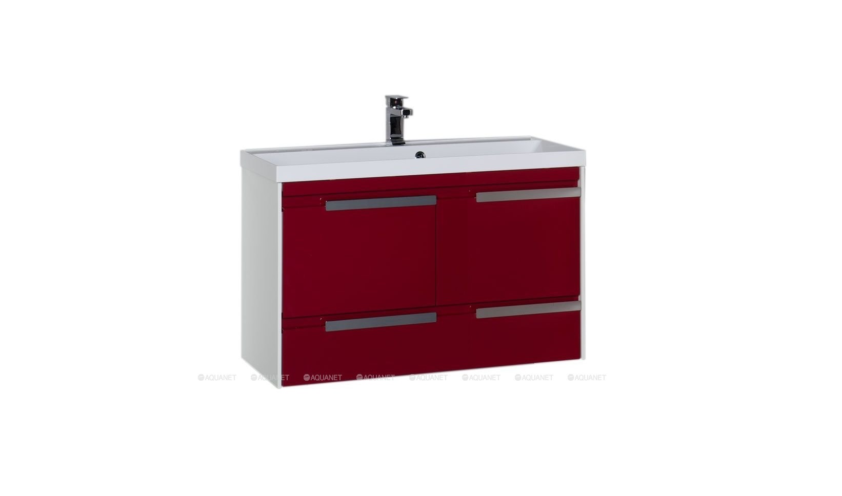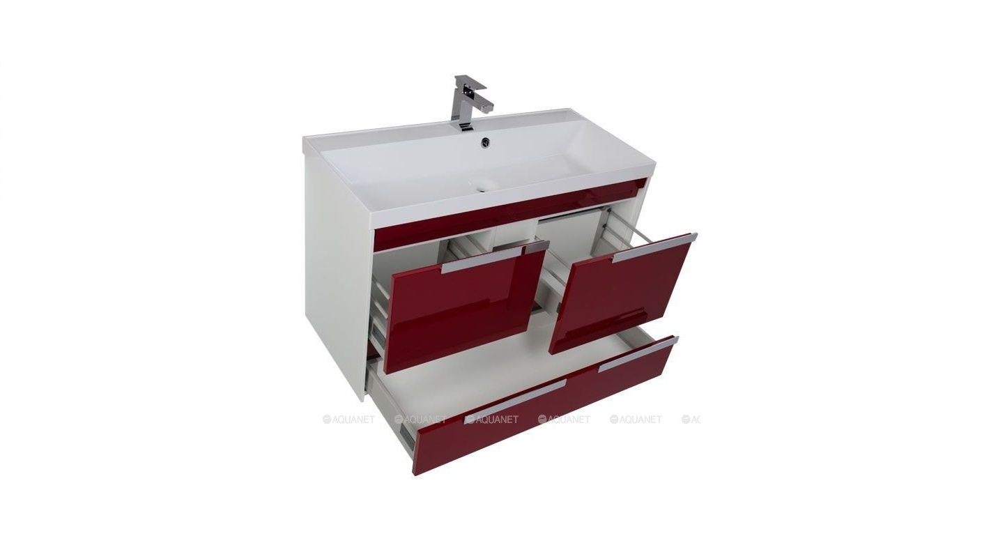 - Тумба: Aquanet Тиволи 100, цвет бордо, 3 выдвижных ящика (180058)