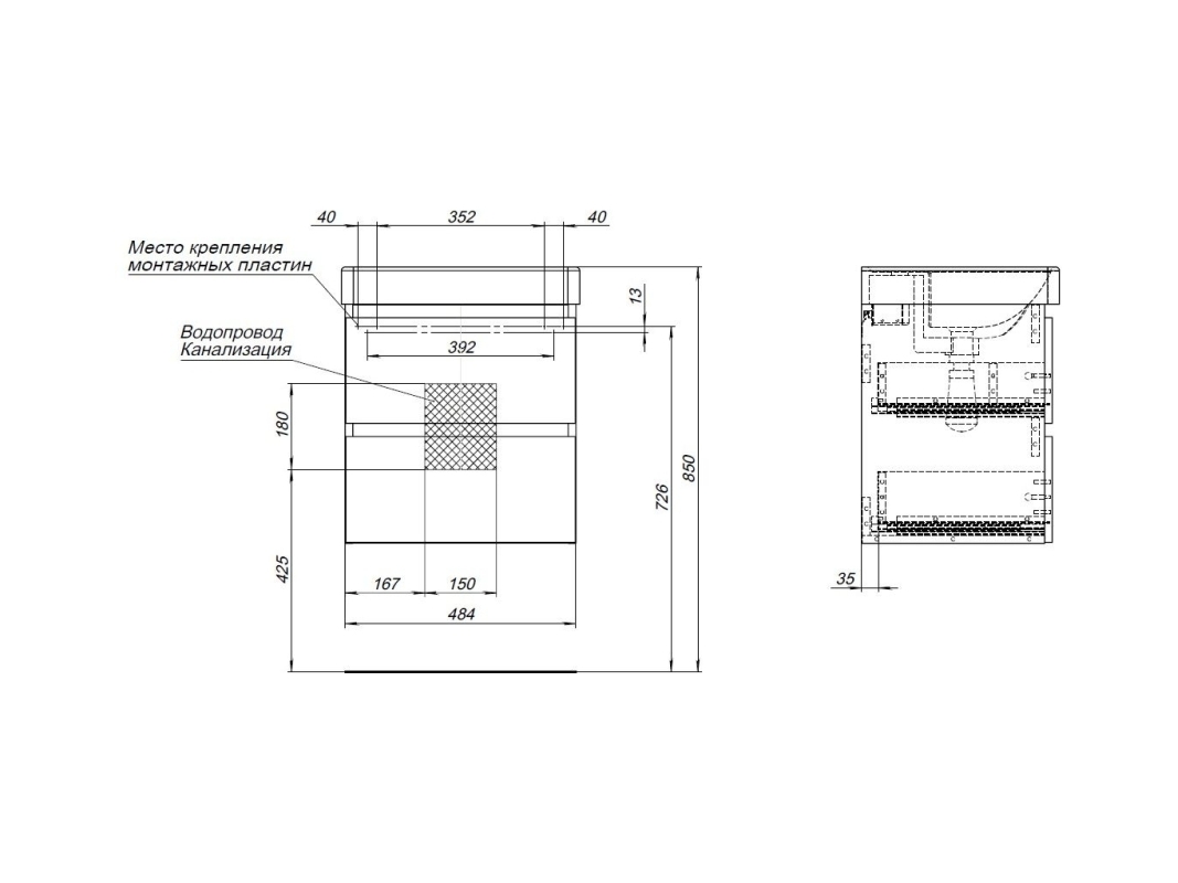 Внутренние детали изготовлены из влагостойкой ЛДСП белого цвета, что обеспечивает не только эстетичный вид, но и долговечность конструкции на долгие годы использования. Погрузитесь в мир изысканности и удобства с тумбой под раковину Aquanet Вега 50 черный - идеальным выбором для вашей ванной комнаты.