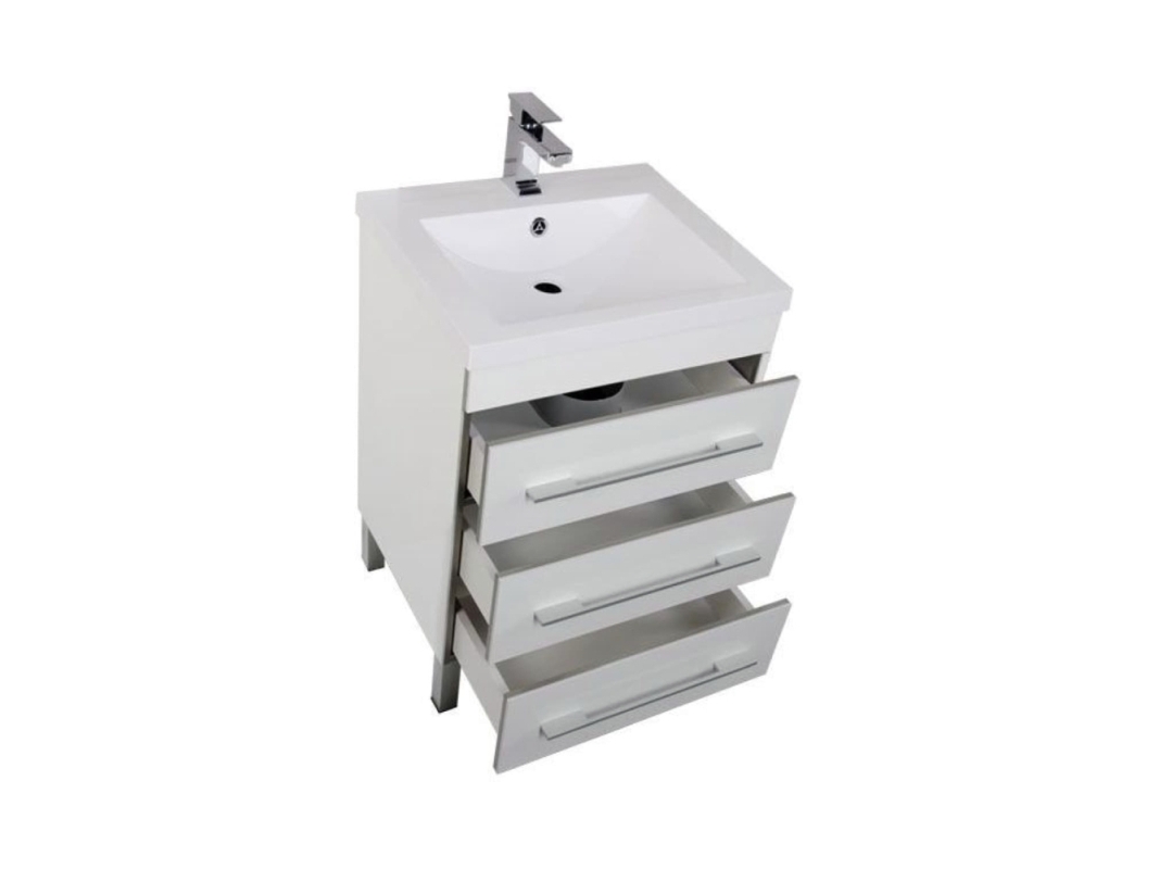 Тумба напольная с раковиной серии Верона с покрытием из качественного акрила — такая отделка придает эффектности внешнему виду и повышает уровень влагозащиты. Применение акрила в производстве мебели для ванных — уникальное предложение, созданное на специализированной линии предприятия. Нейтральный цвет универсален, потому мебель Верона можно совмещать с любыми оттенками в интерьере и разнообразием креативных идей. Экстравагантная геометричность формы подчеркнута горизонтальными линиями фурнитуры ручек выдвижных ящиков. Их вместительное пространство обеспечит дополнительное место хранения банных принадлежностей.